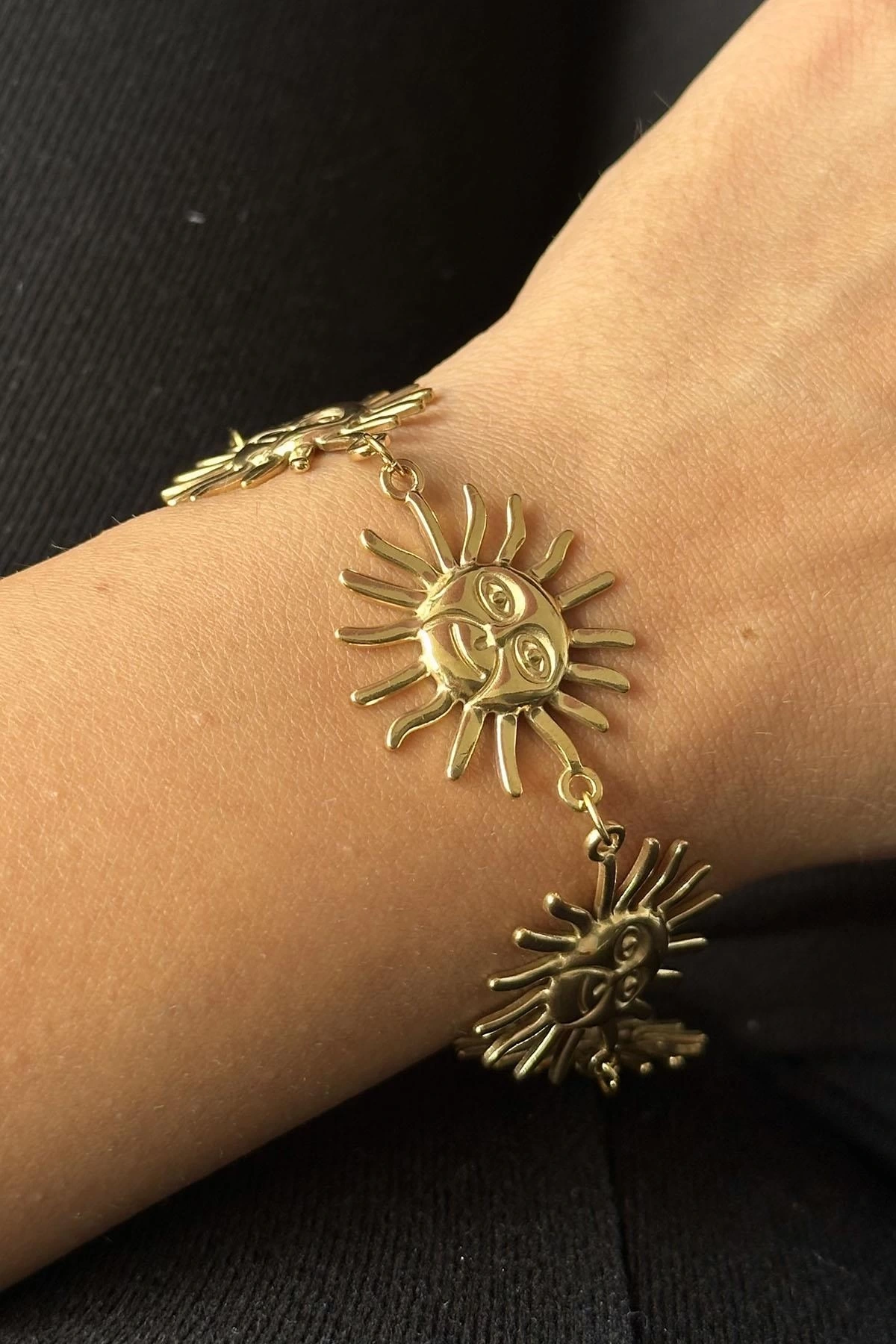 Altın Renk Güneş Figürlü Çelik Bileklik