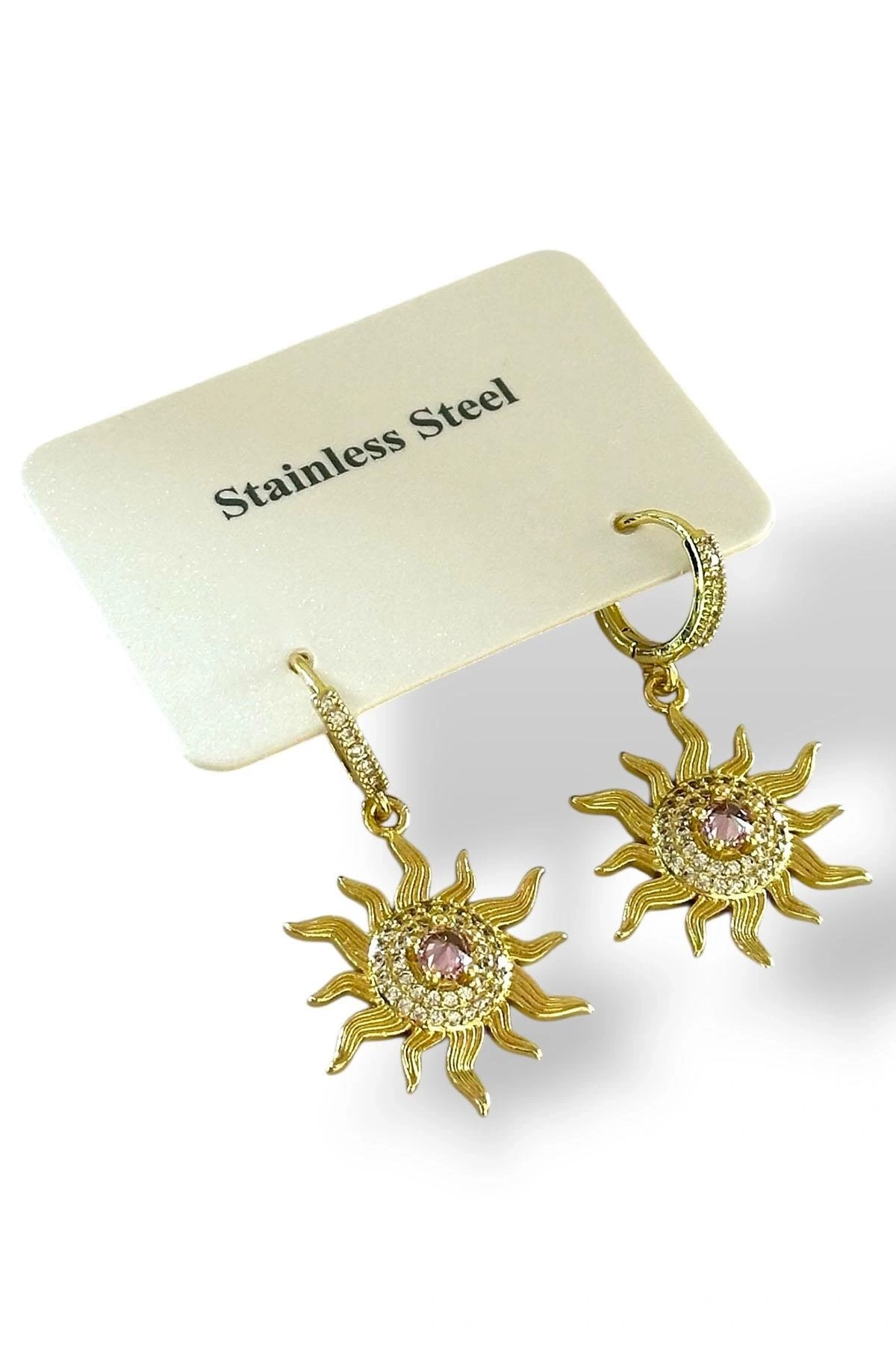 Altın Renk Güneş Figürlü Çelik Küpe (Çift)
