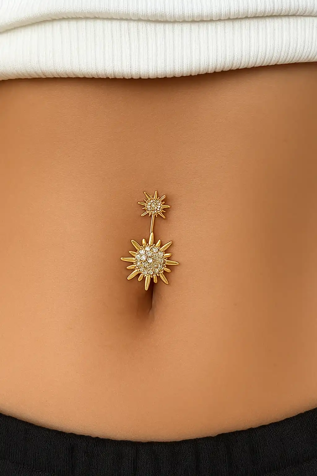 Altın Renk Güneş Figürlü Cerrahi Çelik Göbek Piercing