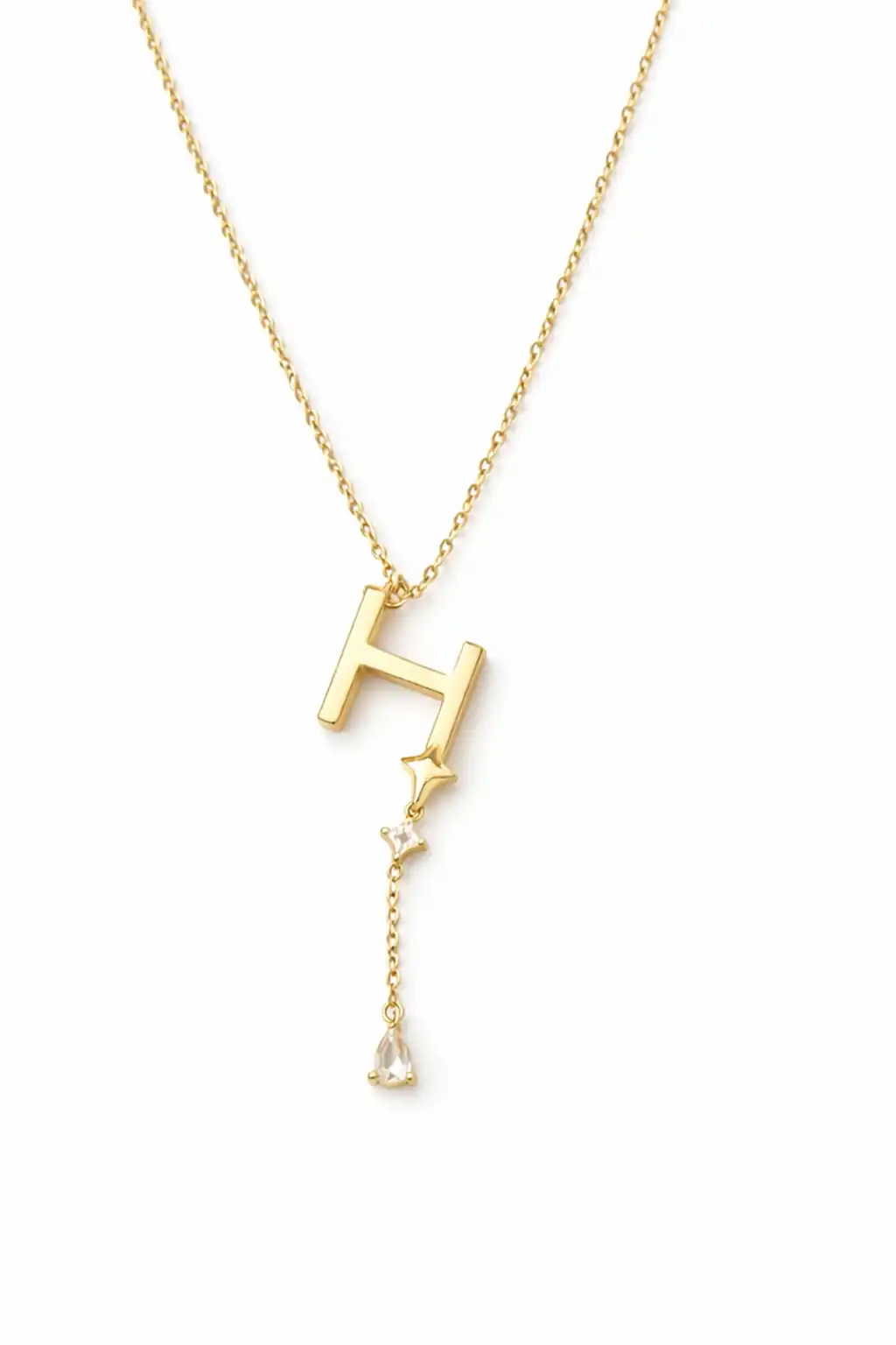 Altın Renk H Harfli Taş Detaylı Çelik Kolye