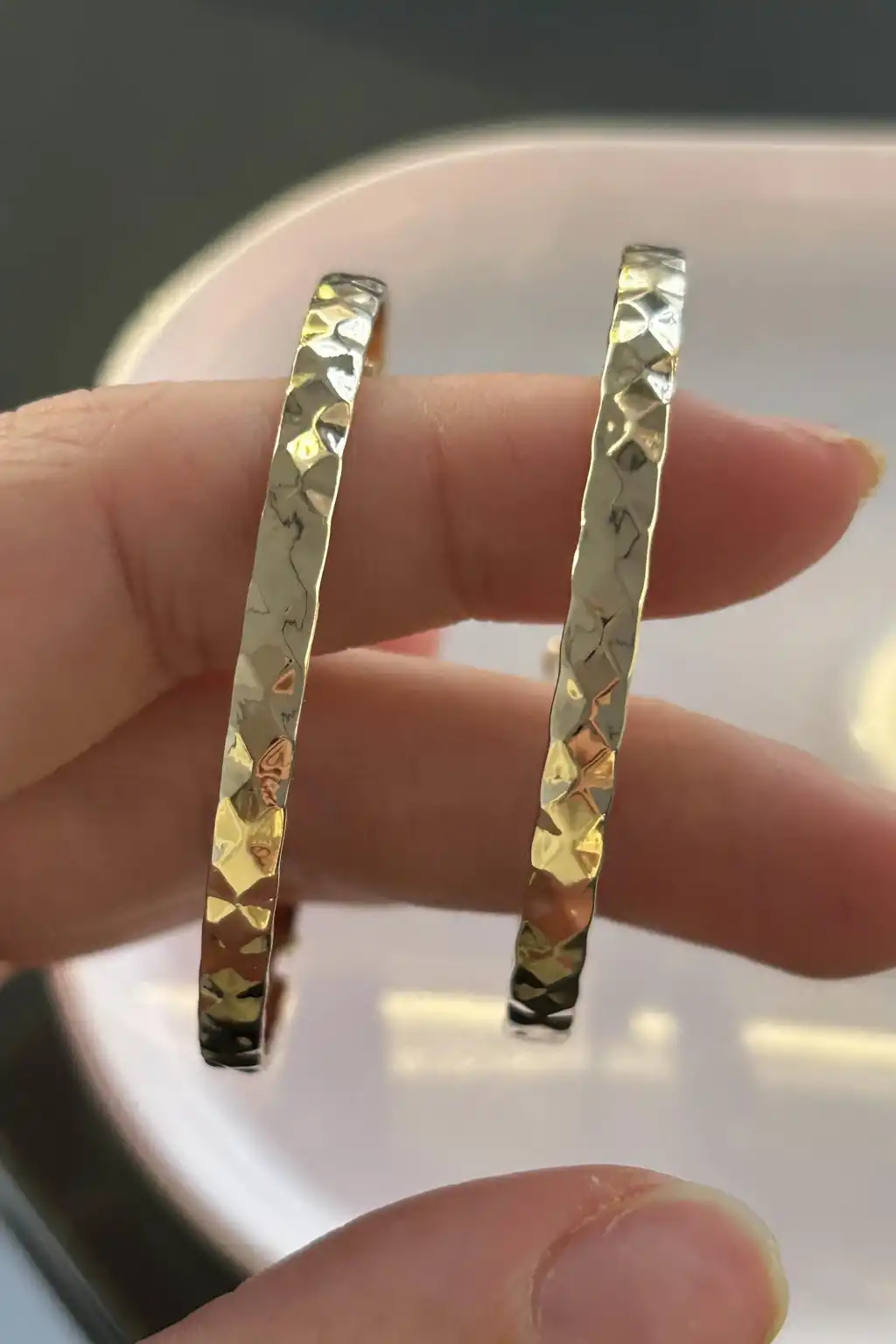 Altın Renk Üçlü Görünümlü Halka Küpe (Çift)