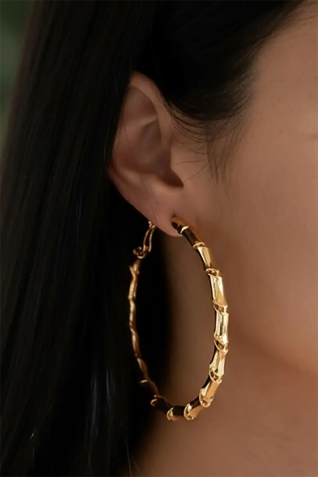 Altın Renk Üçlü Görünümlü Halka Küpe (Çift)