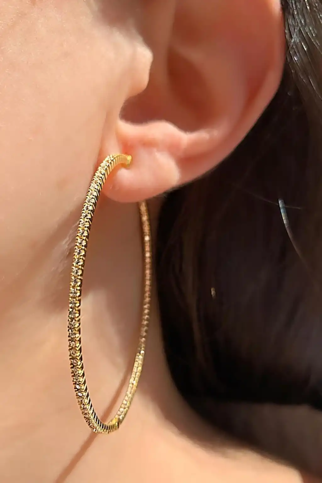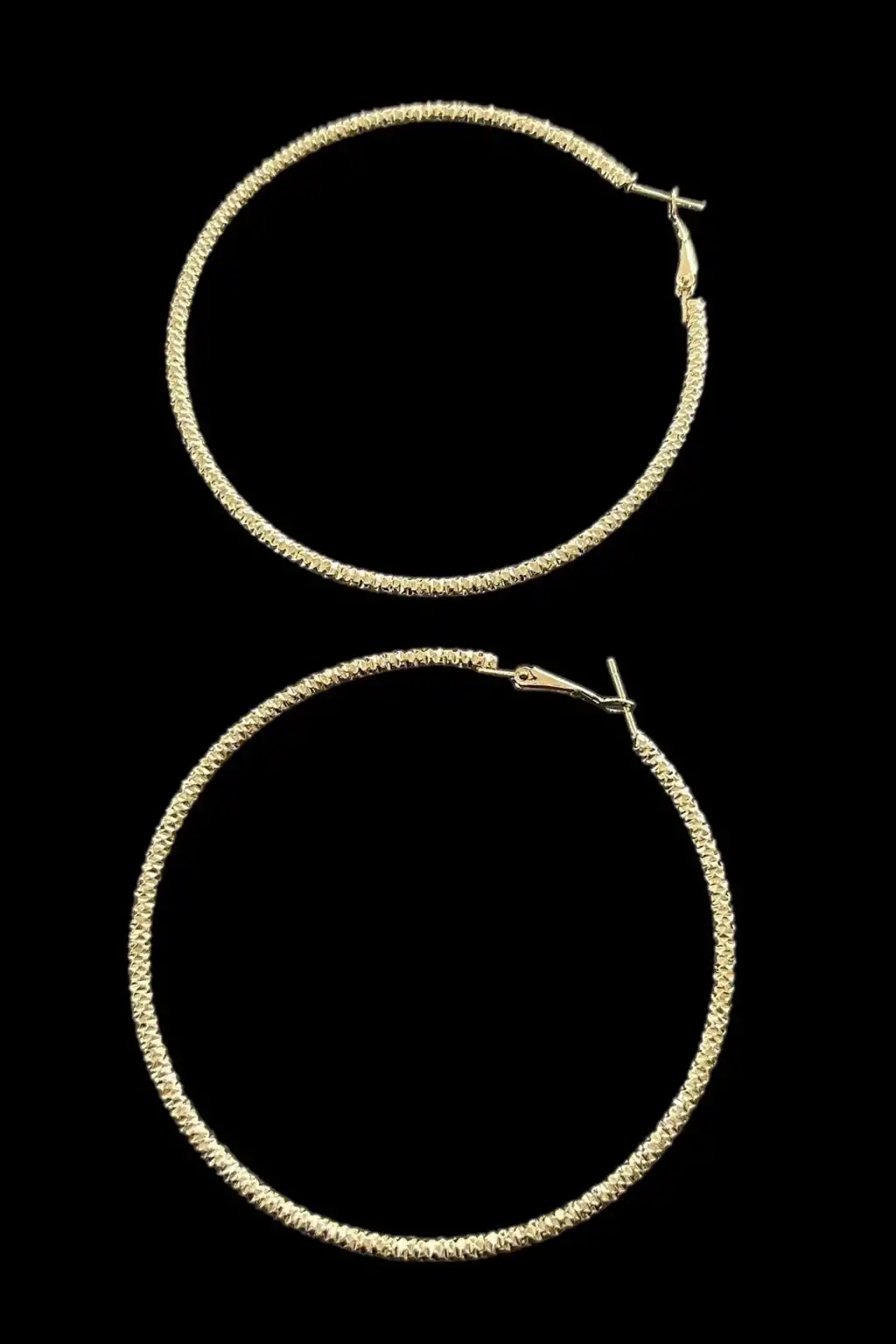 Altın Renk Taş Detaylı Halka Küpe (Çift)