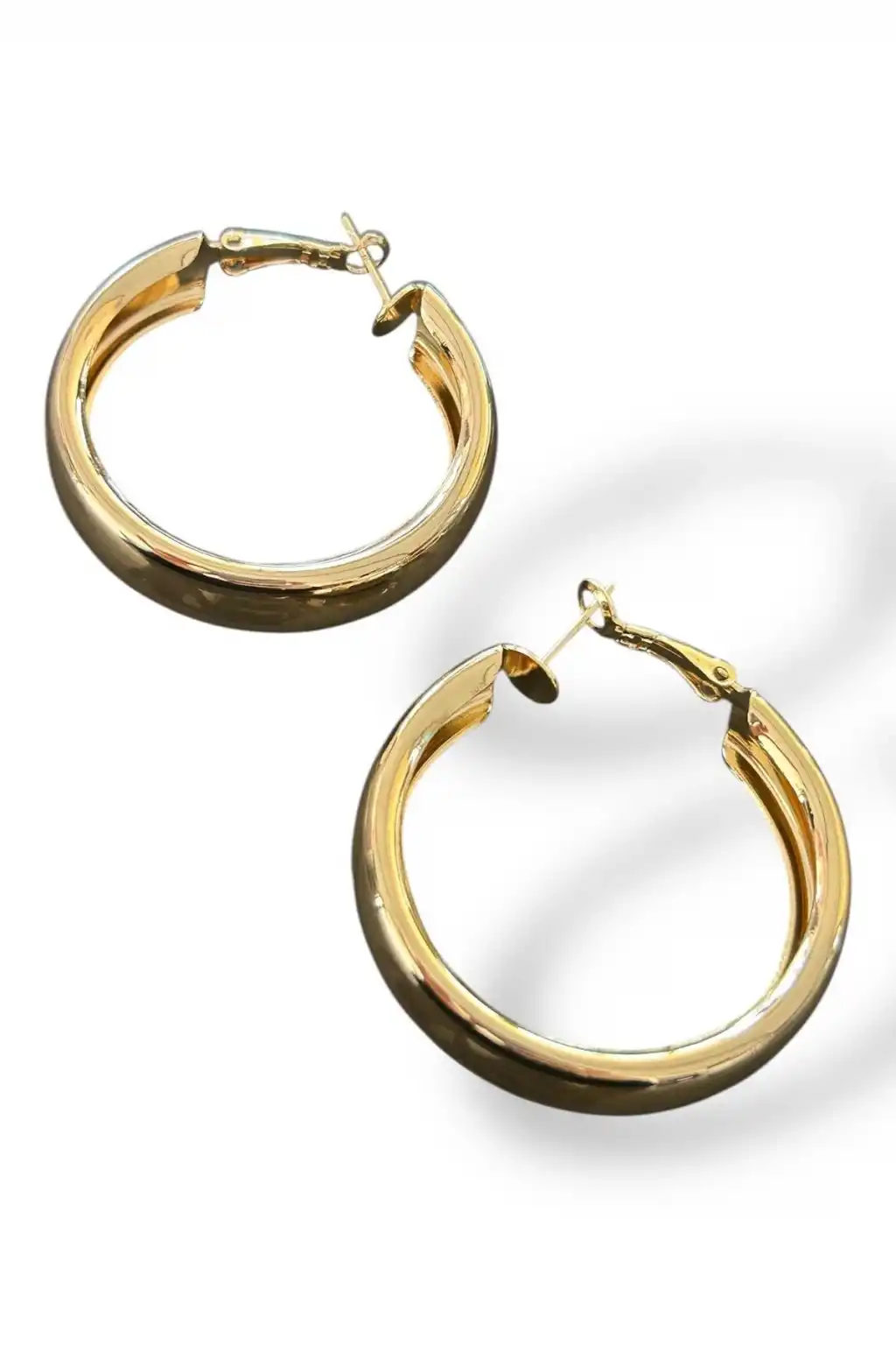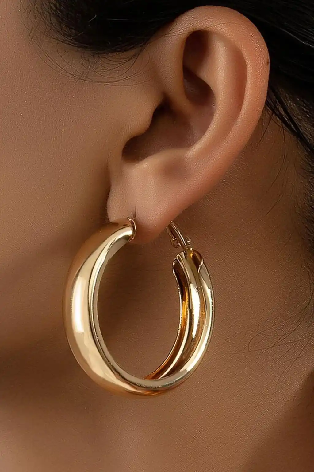 Altın Renk Üçlü Görünümlü Halka Küpe (Çift)