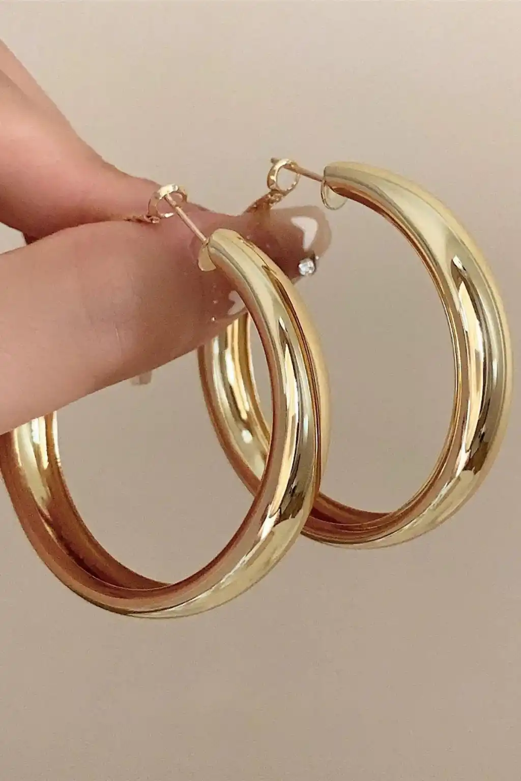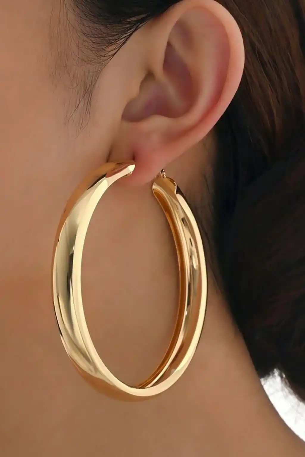 Altın Renk Üçlü Görünümlü Halka Küpe (Çift)