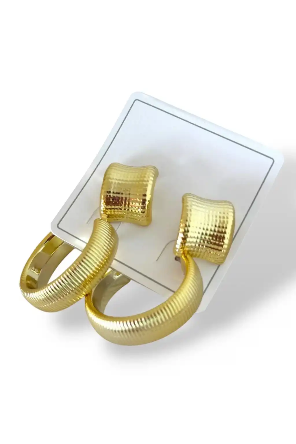 3'lü Altın Renk Kalp Figürlü 14K Altın Kaplama TX Küpe