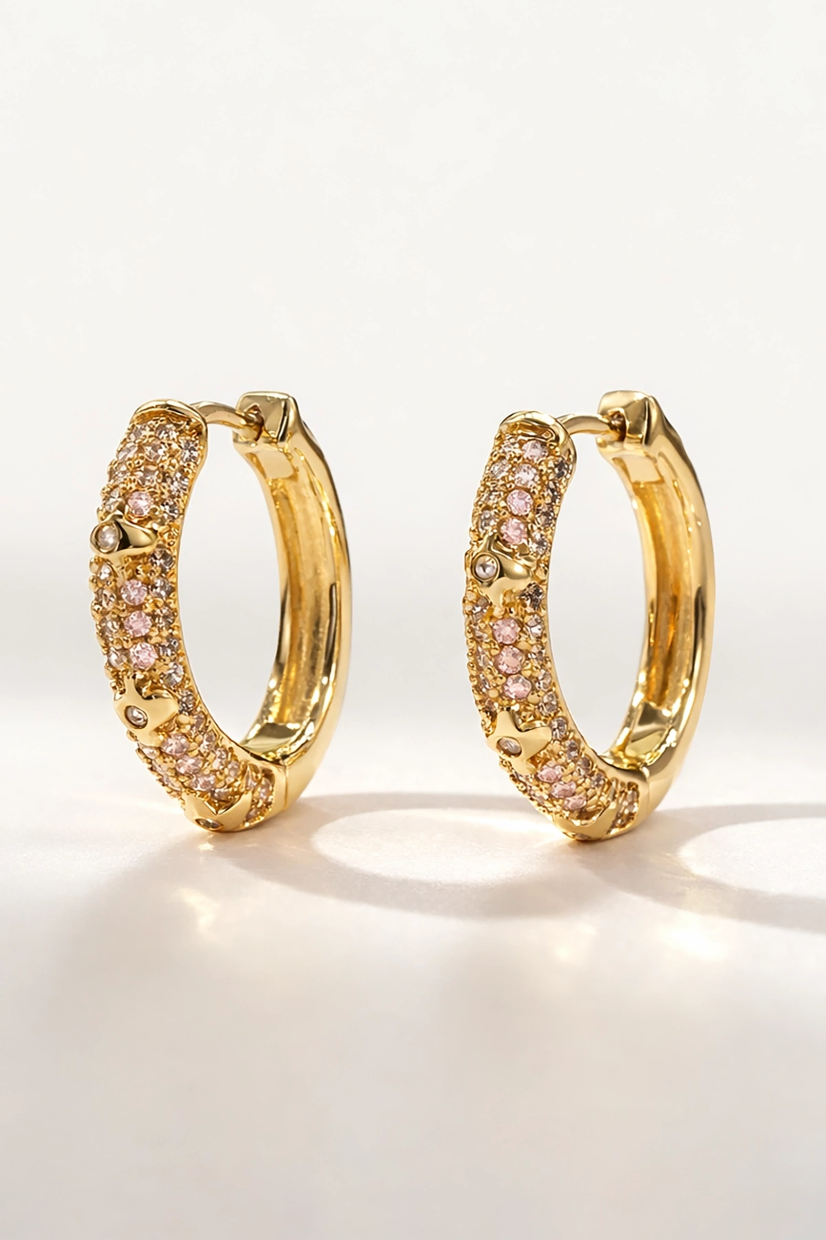 Altın Renk Halka Taş Detaylı 14K Altın Kaplama Tx Küpe (Çift)