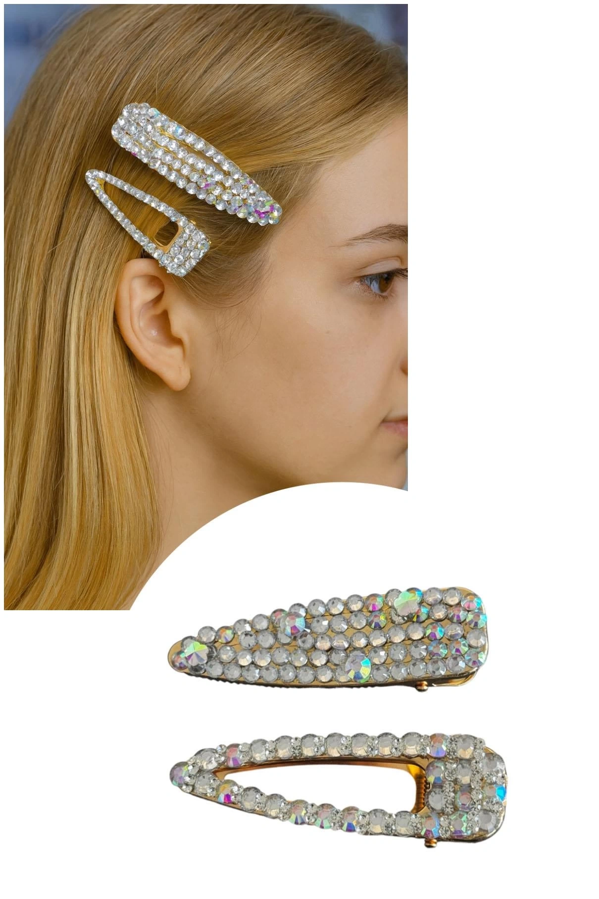Altın Renk Hologram Taş Detaylı İkili Yan Toka