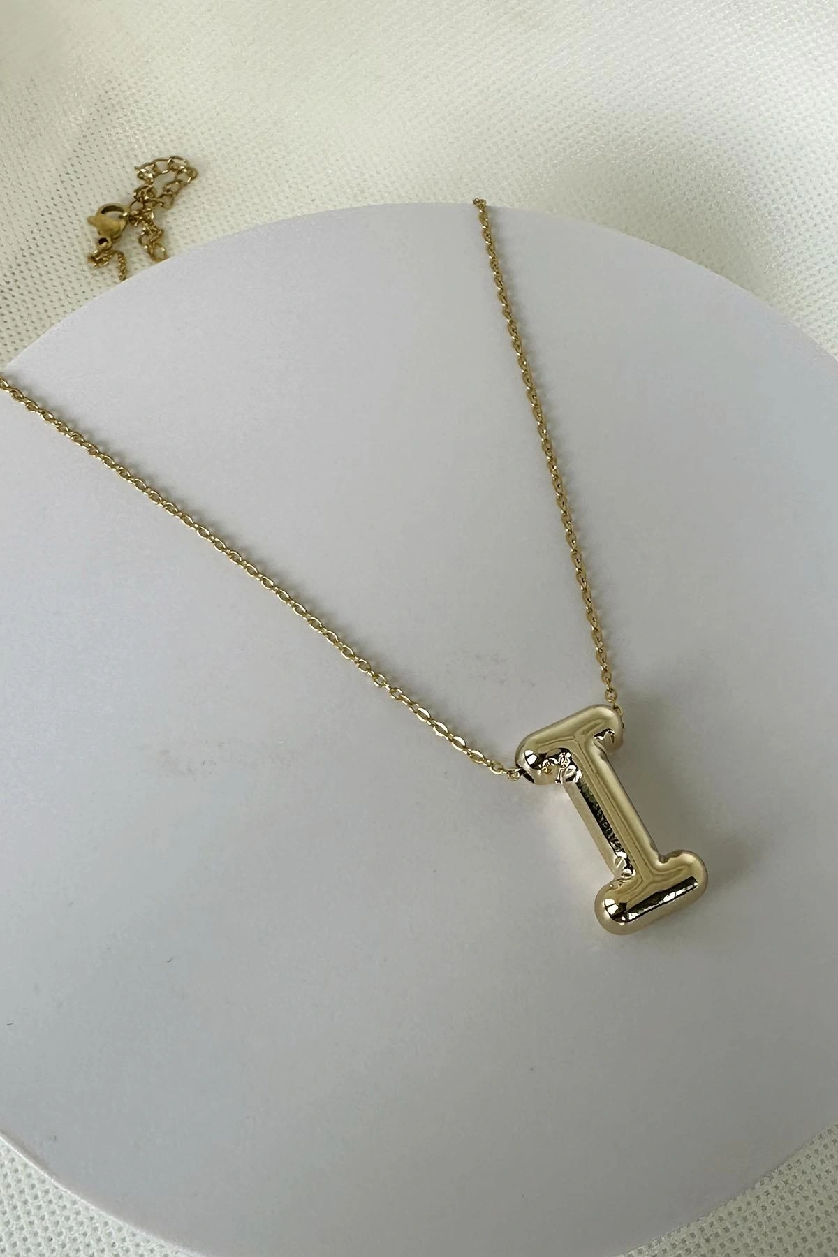 Altın Renk I Harfli Çelik Balon Kolye