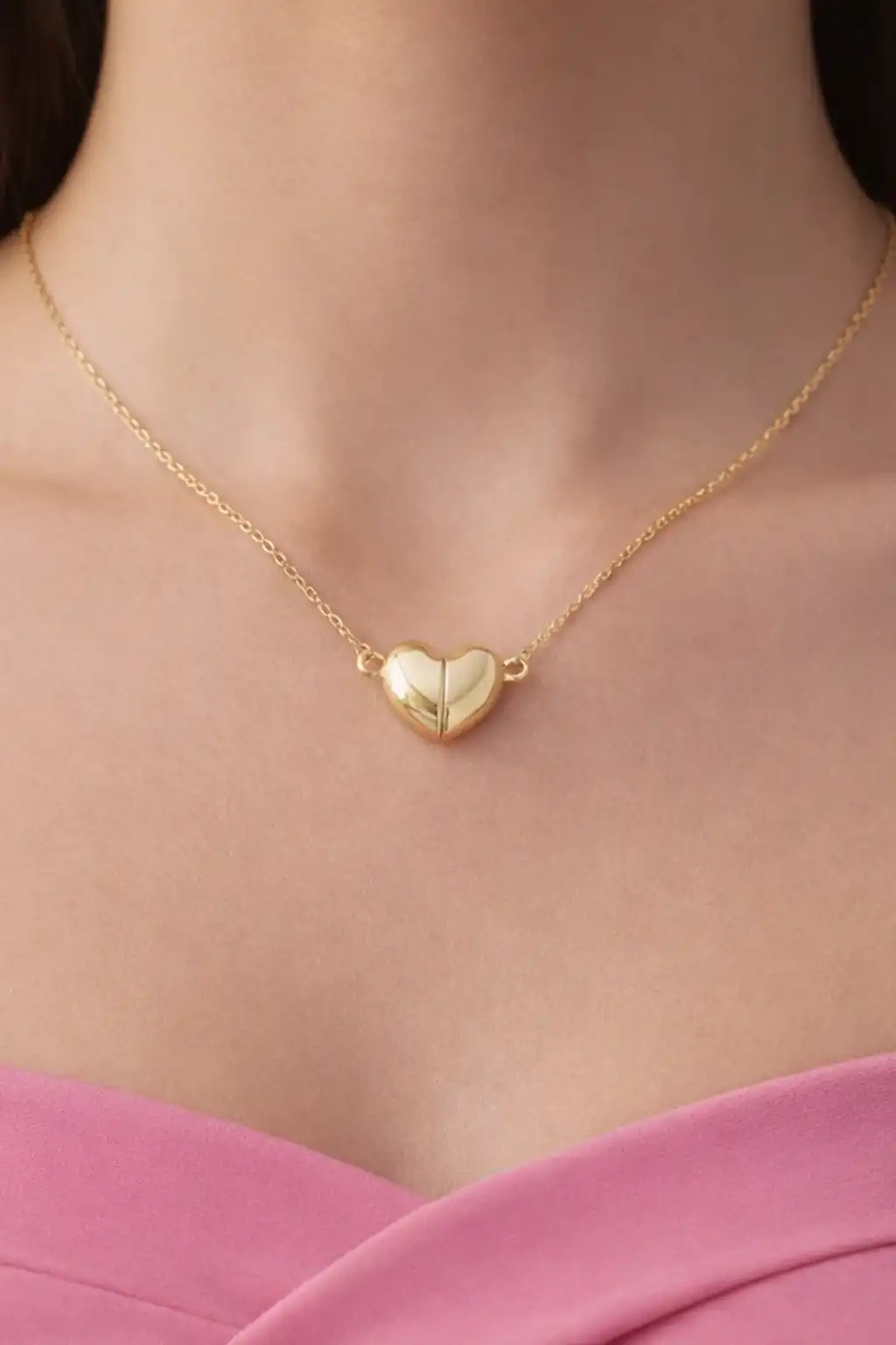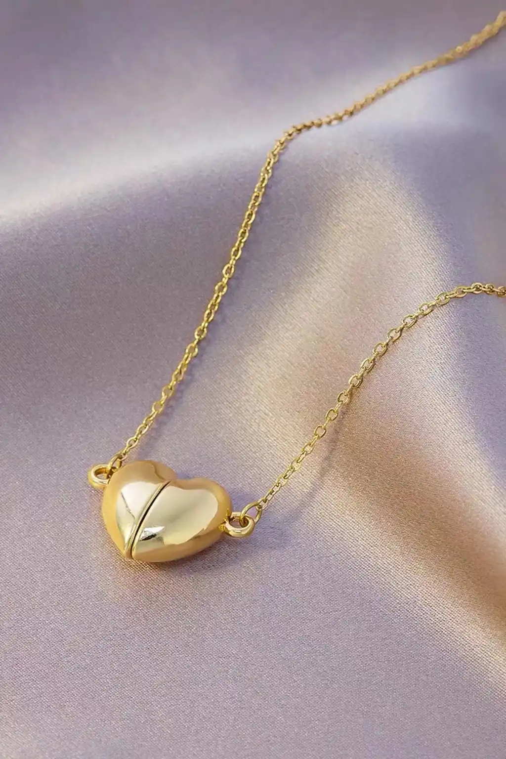 Altın Renk İkiye Ayrılan Mıknatıslı Kalp Figürlü Çelik Kolye