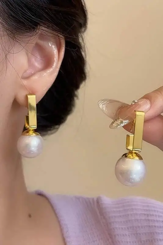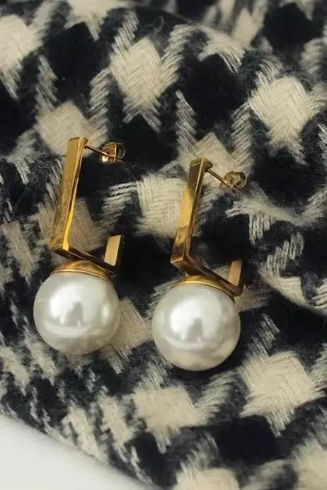 Altın Renk İnci Detaylı Çelik Küpe (Çift)