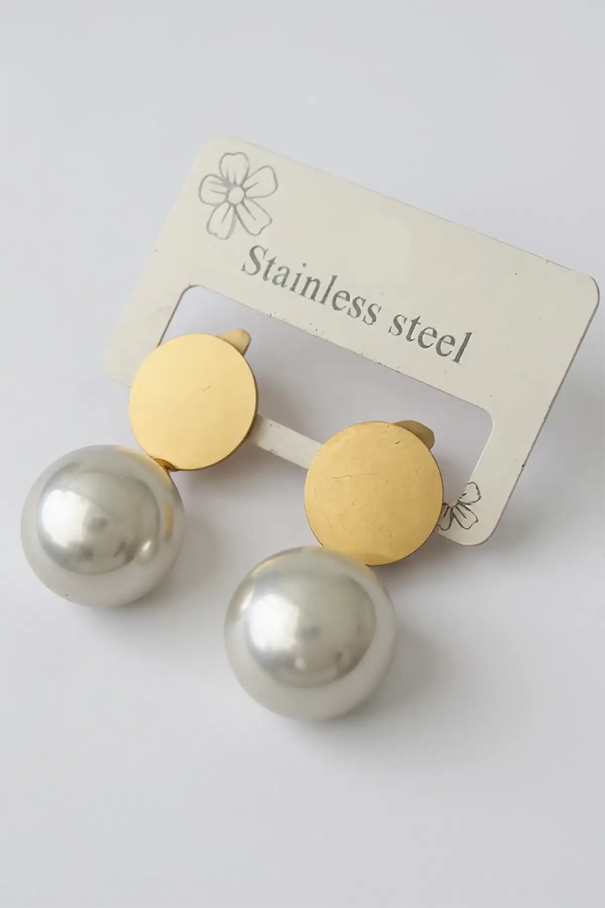 Altın Renk İnci Detaylı Çelik Küpe (Çift)