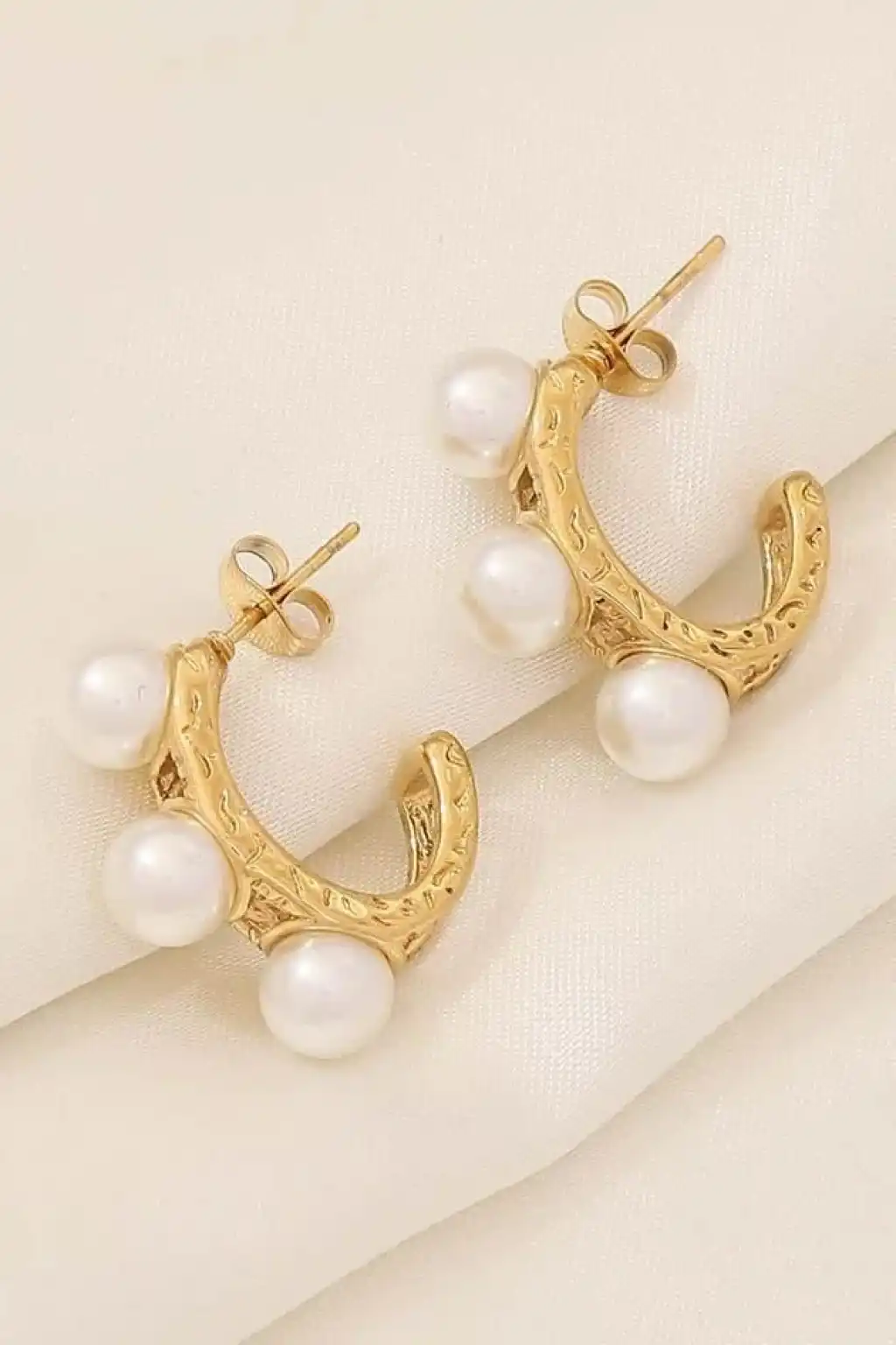 Altın Renk İnci Detaylı Çelik Küpe (Çift)