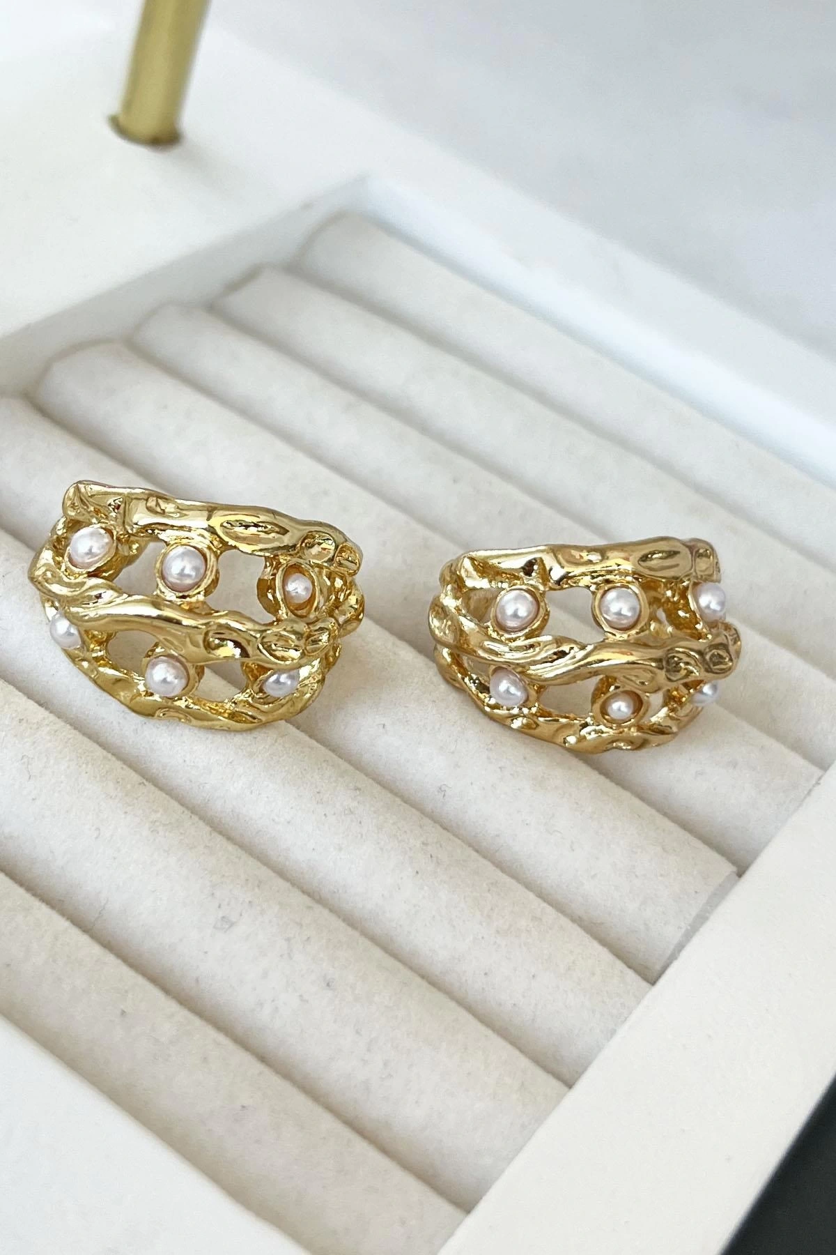Altın Renk İnci Detaylı Halka Küpe (Çift)