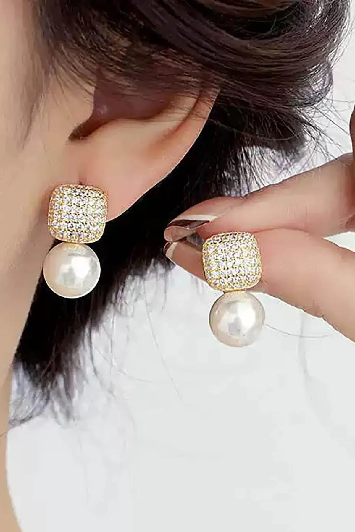 Beyaz Renk Puantiye Detaylı Küpe (Çift)