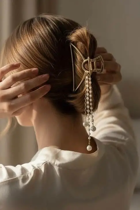Altın Renk İnci Detaylı Metal Mandal Toka
