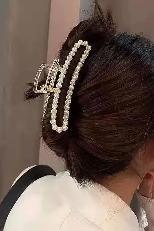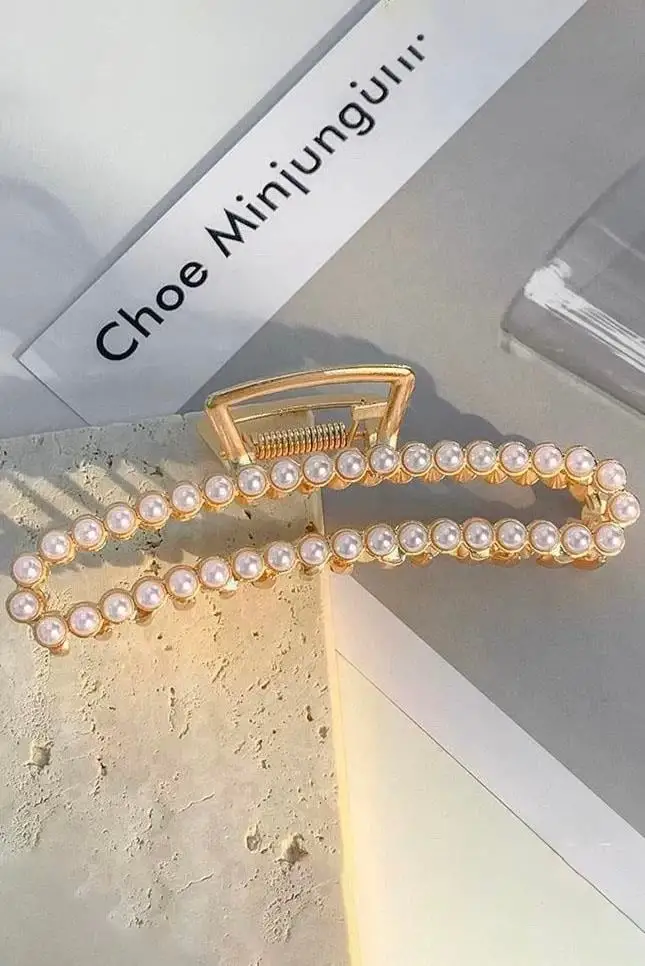 Altın Renk İnci Detaylı Metal Mandal Toka