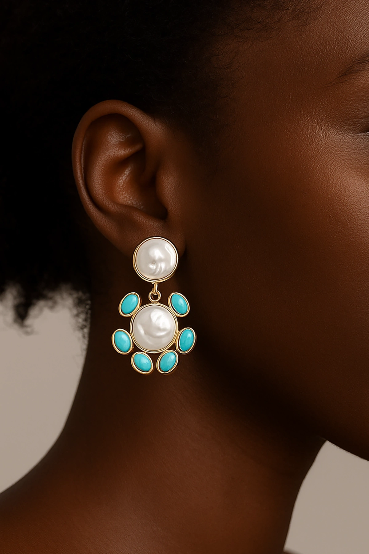 Altın Renk İnci Detaylı Tasarım Küpe (Çift)