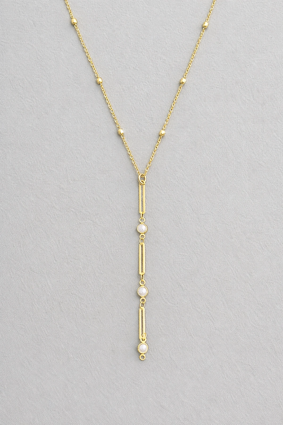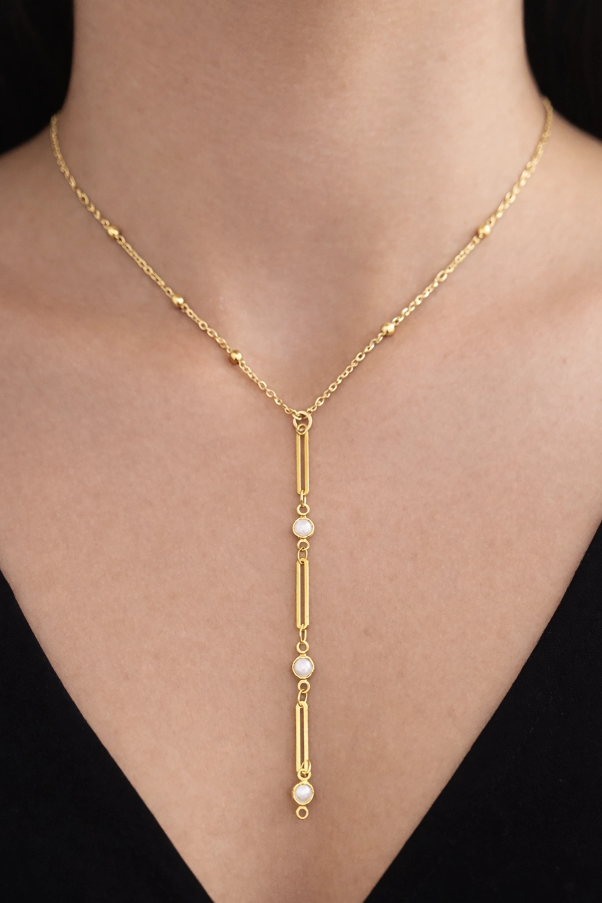 Altın Renk İnci Figürlü Çelik Y Kolye