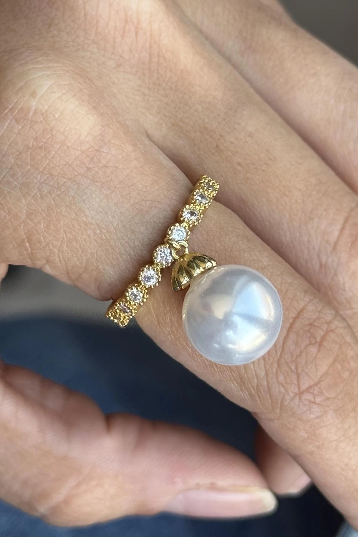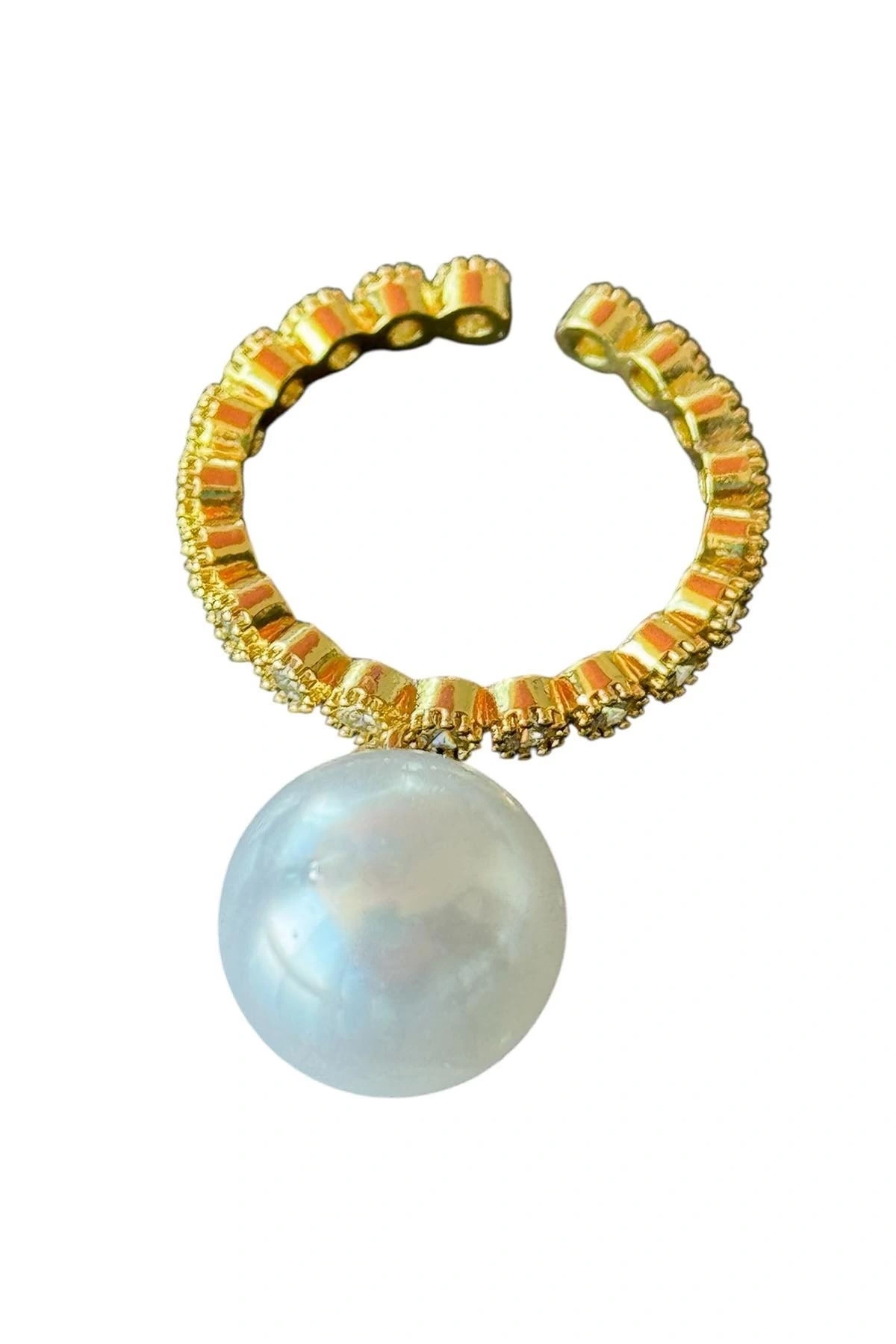 Altın Renk İnci Ve Taş Detaylı Ayarlanabilir Yüzük