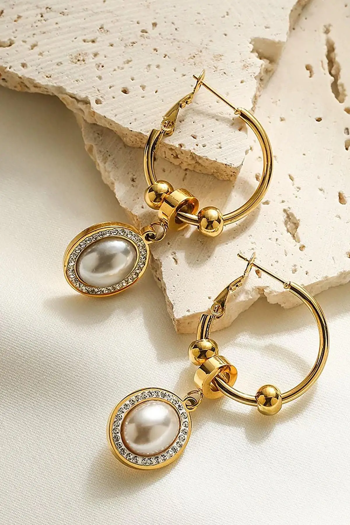 Altın Renk İnci Ve Taş Detaylı Çelik Küpe (Çift)