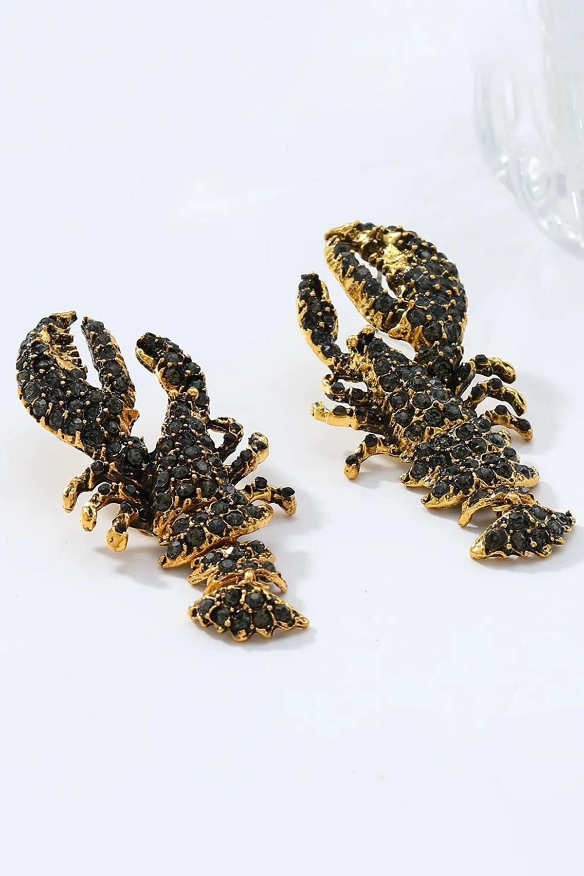 Altın Renk Istakoz Figürlü Taş Detaylı Tasarım Küpe(Çift)