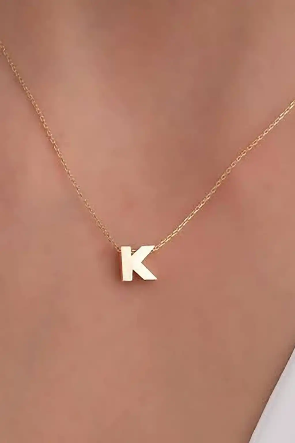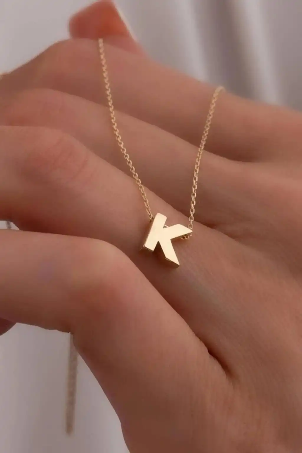 Altın Renk K Harf Çelik Kolye