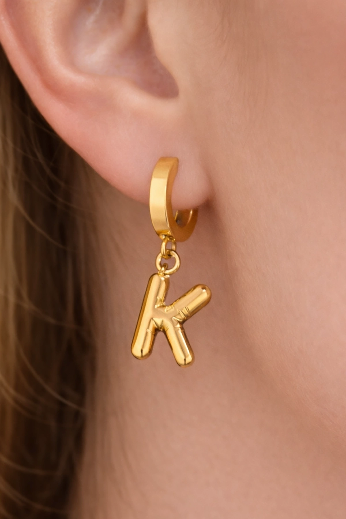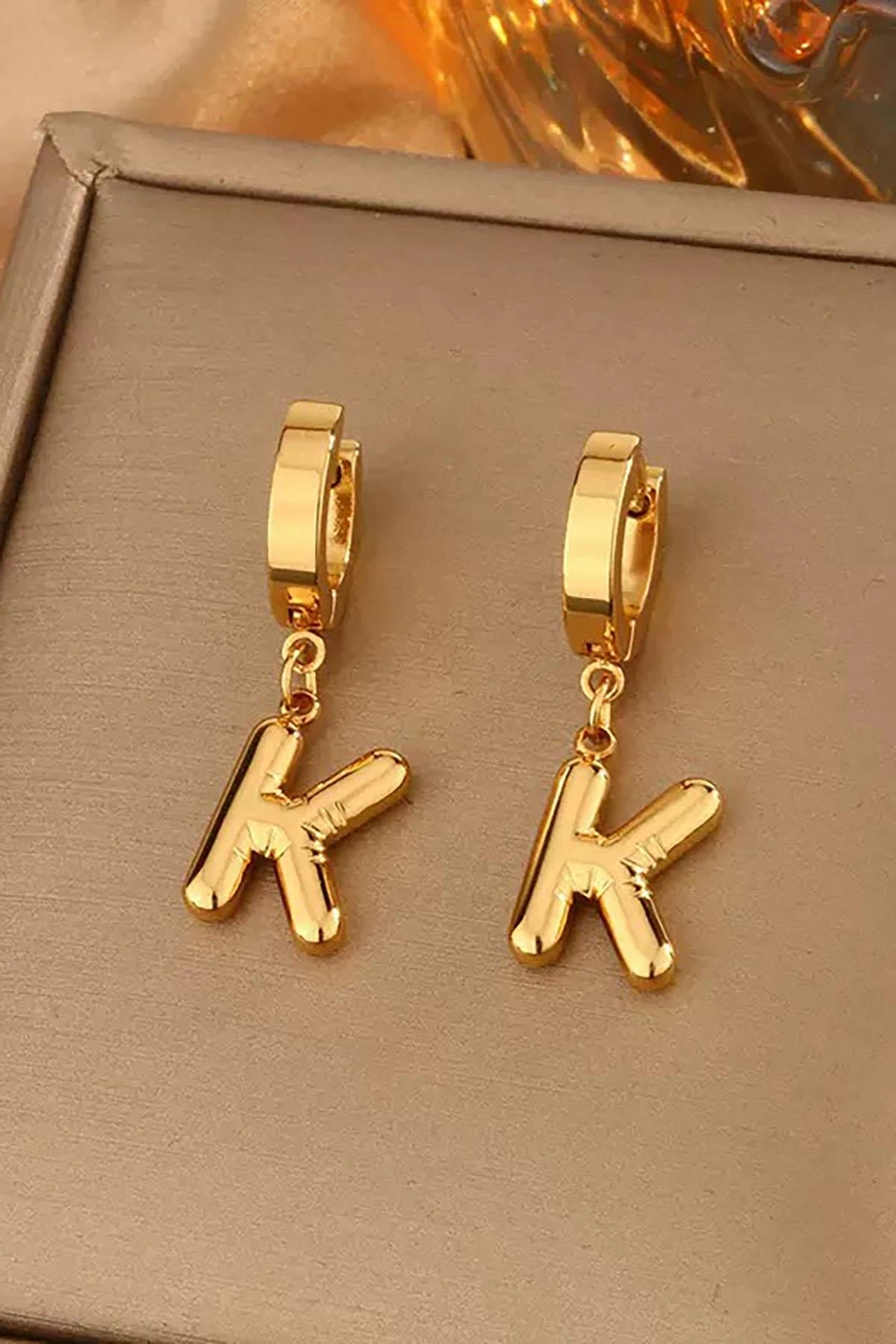 Altın Renk K Harf Çelik Küpe (Çift)