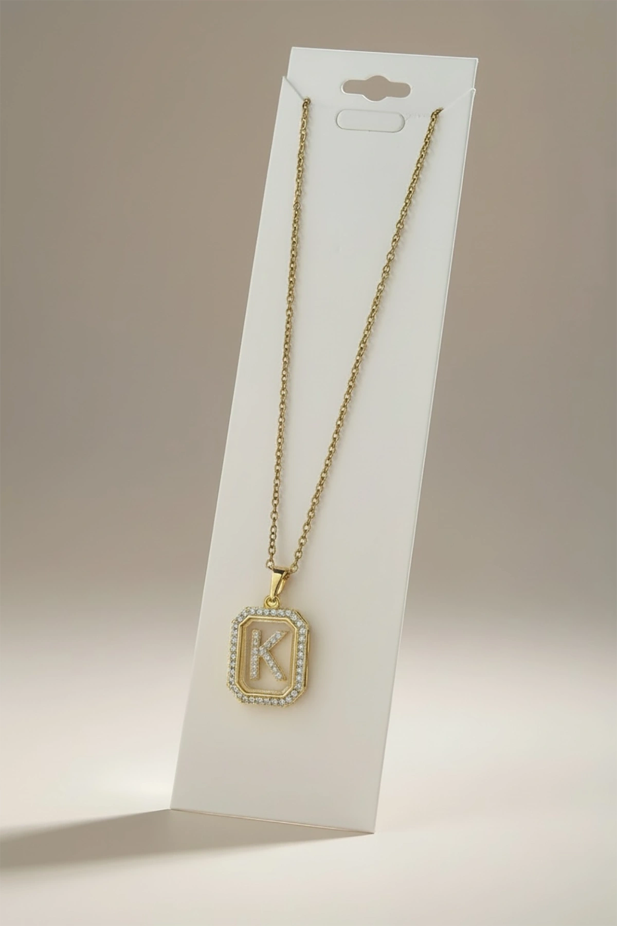 Altın Renk K Harf Taş Detaylı Çelik Kolye