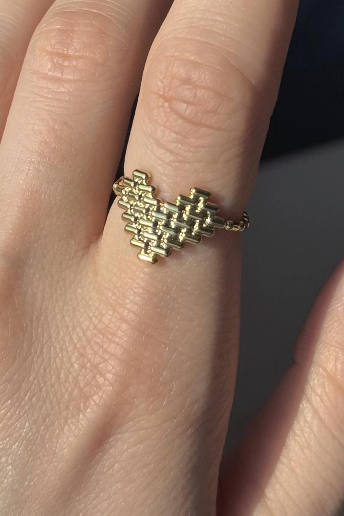 Altın Renk Kalp Detaylı Ayarlanabilir Yüzük
