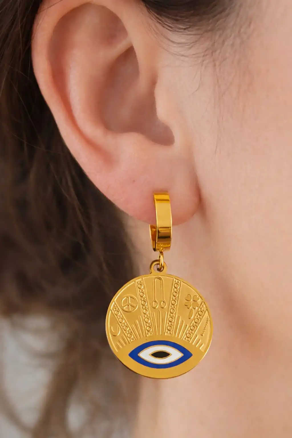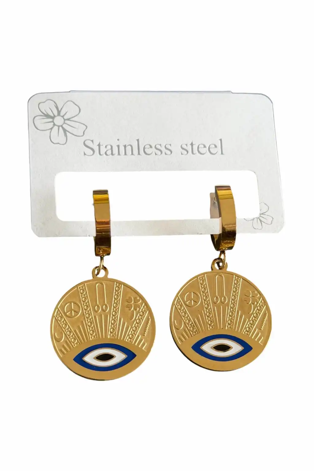 Altın Renk El Figürlü Çelik Küpe (Çift)