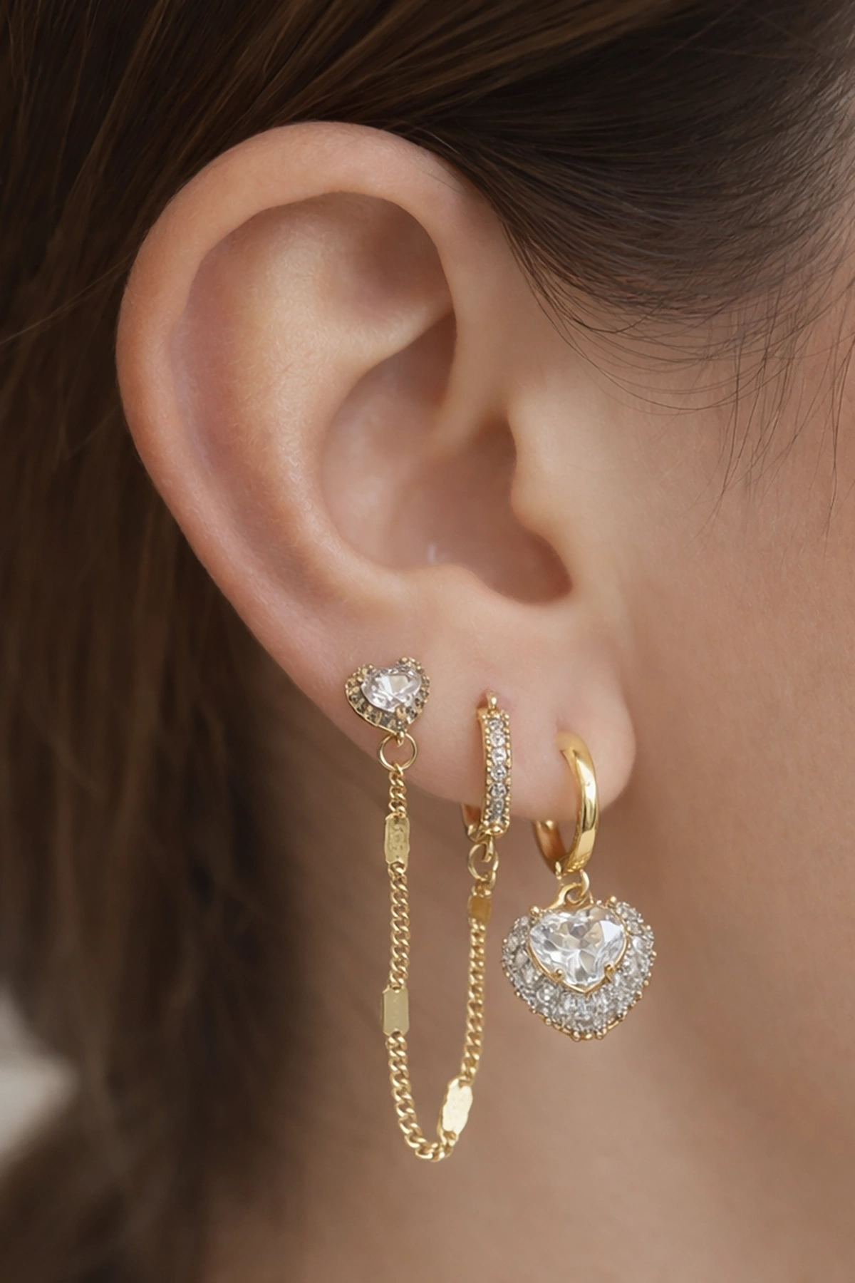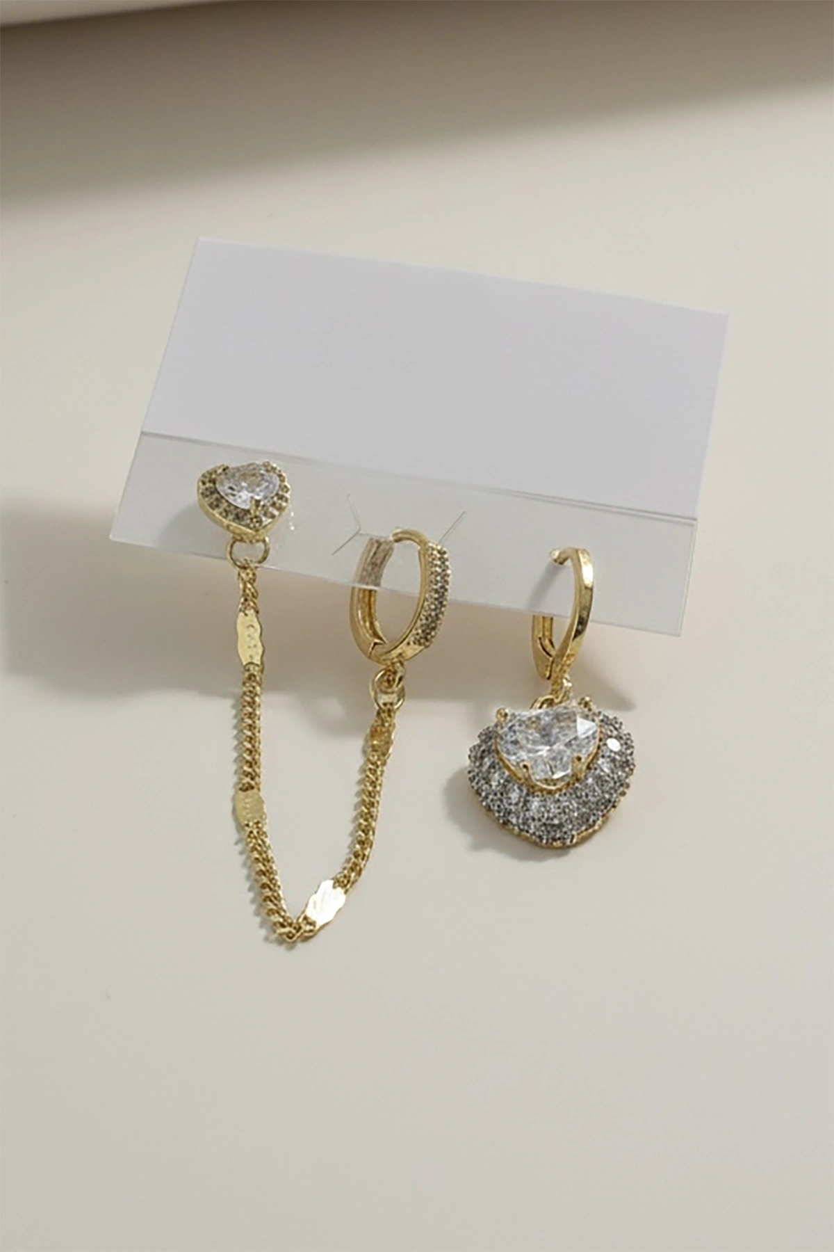 Altın Renk Kalp Figürlü 3'lü Küpe Set