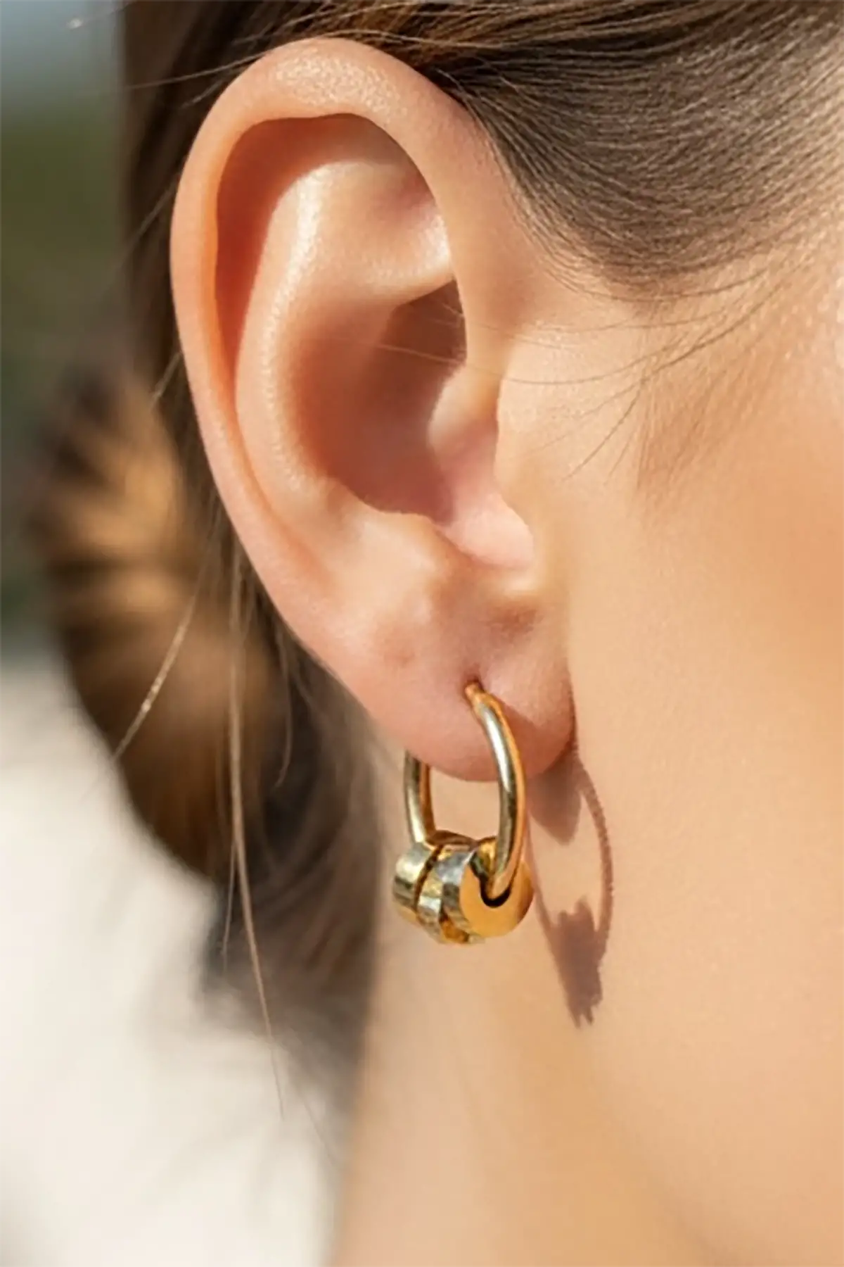 Altın Renk Taş Detaylı Çelik Küpe (Çift)