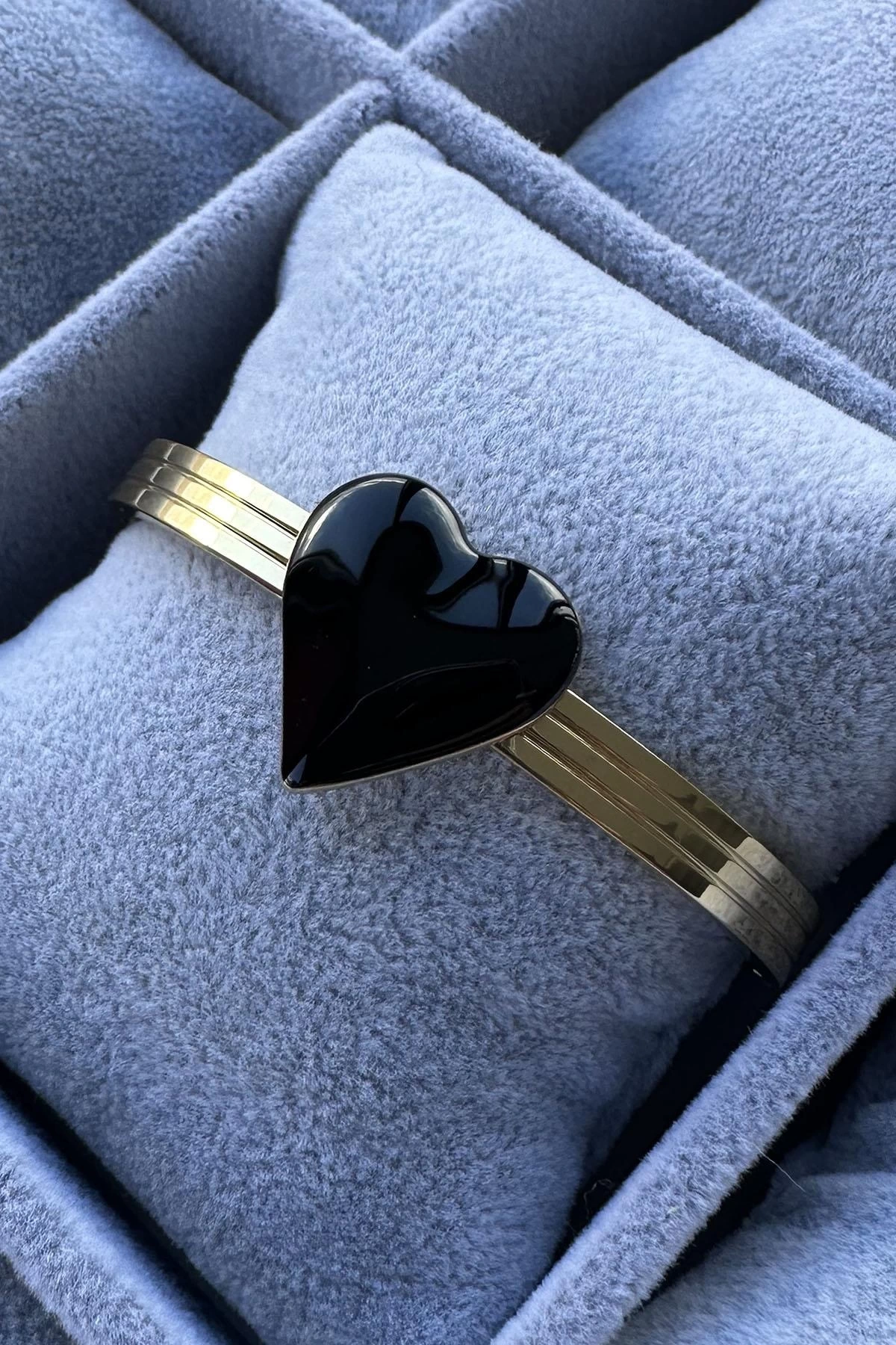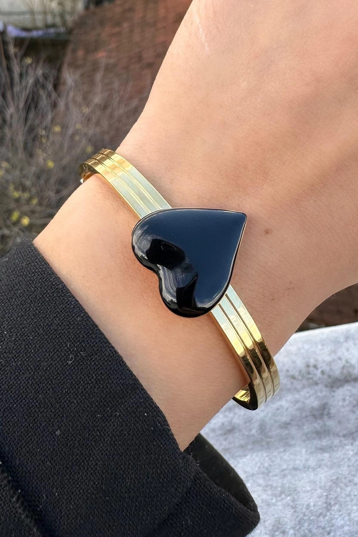 Altın Renk Kalp Figürlü Çelik Kelepçe Bileklik