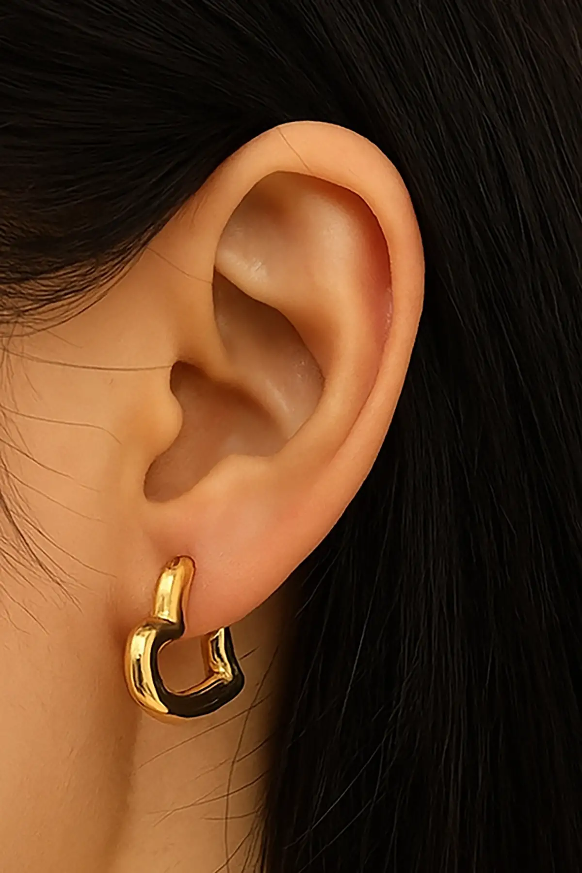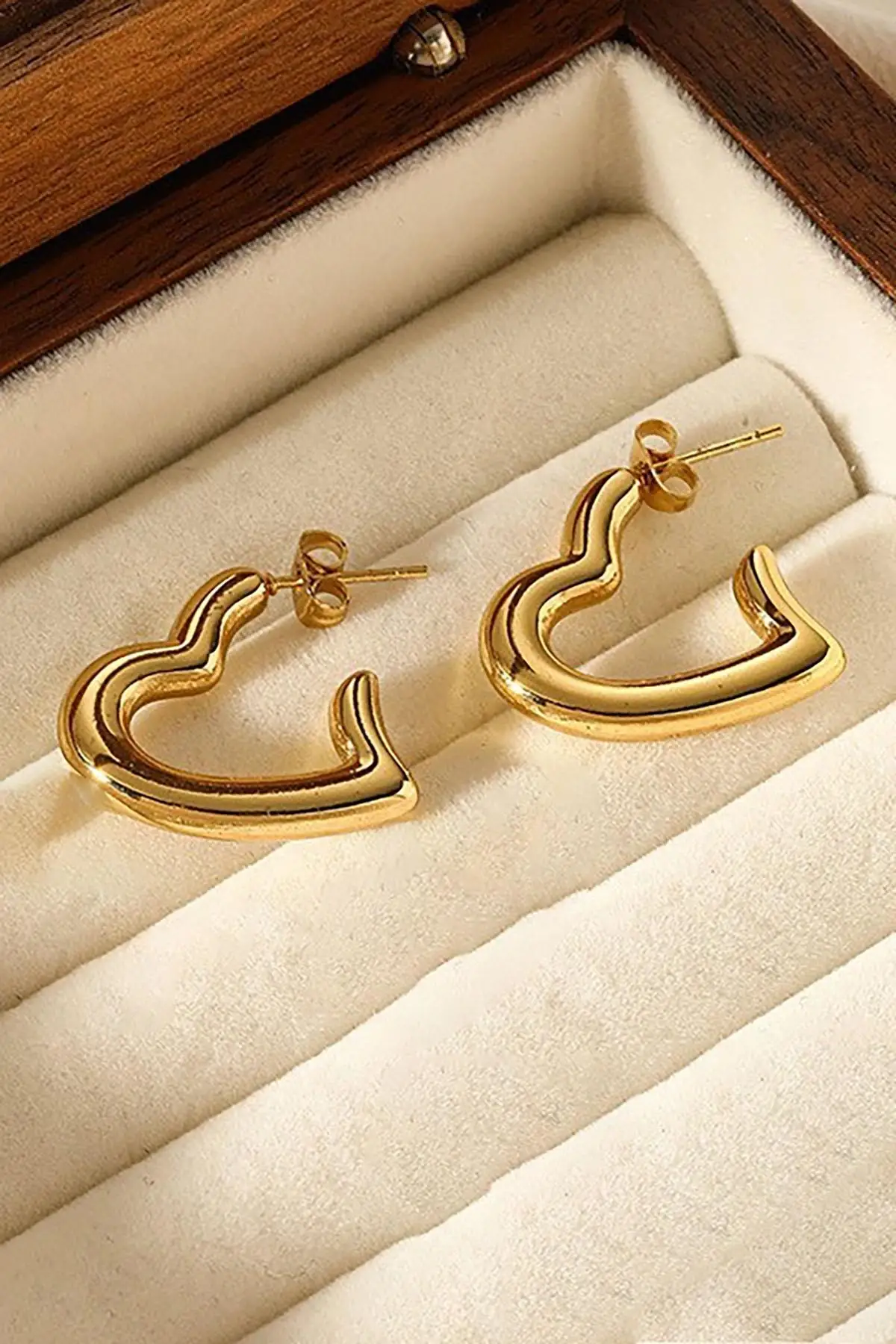 Altın Renk Kalp Figürlü Çelik Küpe (Çift)