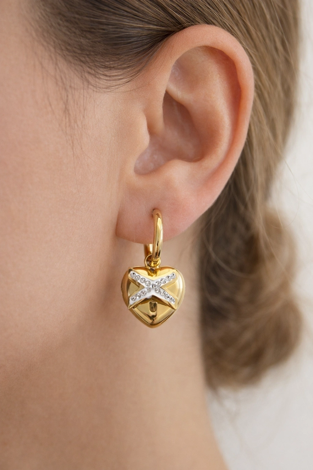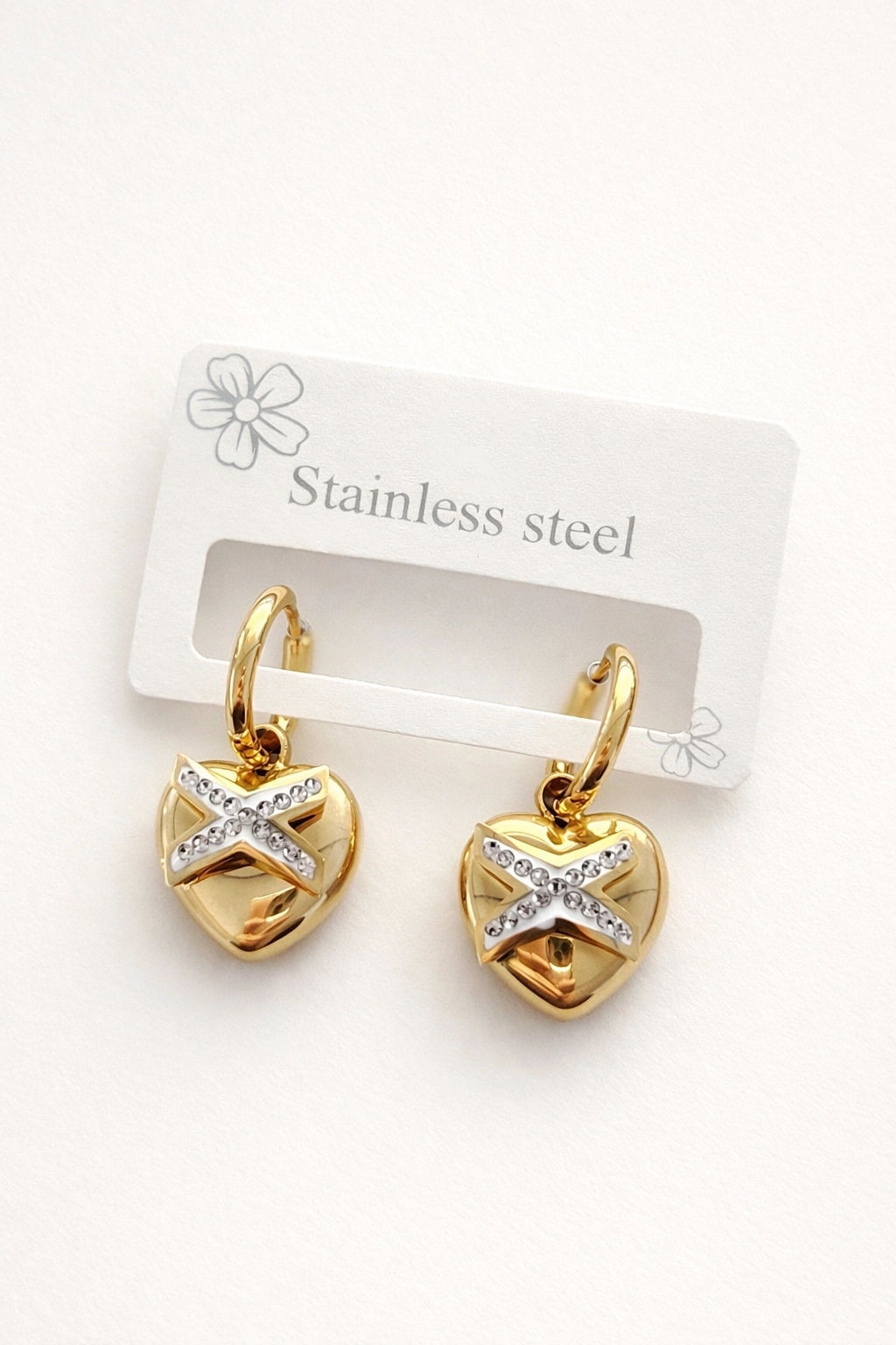 Altın Renk Kalp Figürlü Çelik Küpe (Çift)