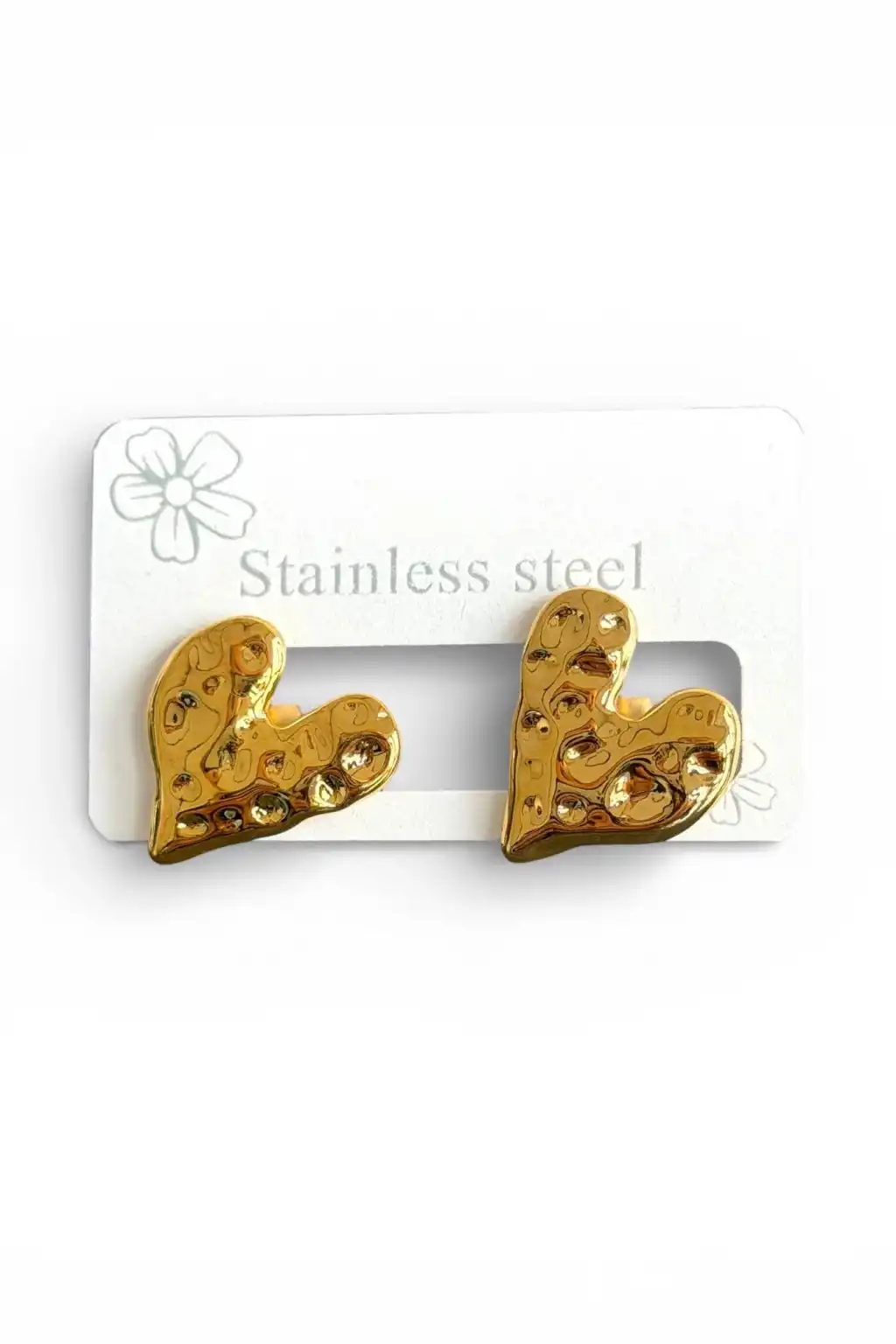 Altın Renk Kalp Figürlü Çelik Küpe (Çift)