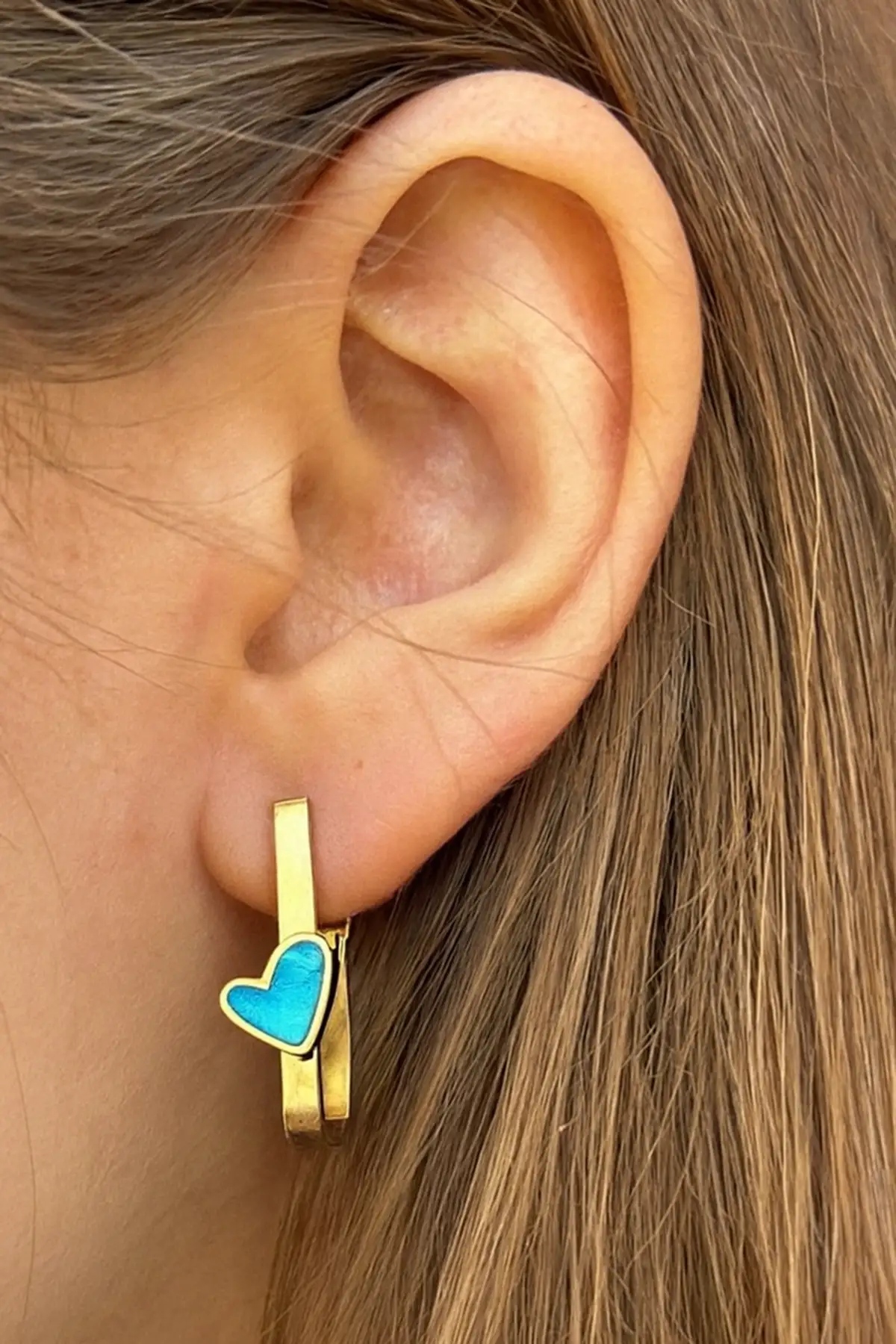 - Zarif tasarımıyla dikkat çeken bu çift küpe, altın rengi detaylarıyla göz alıcı bir görünüm sunar.