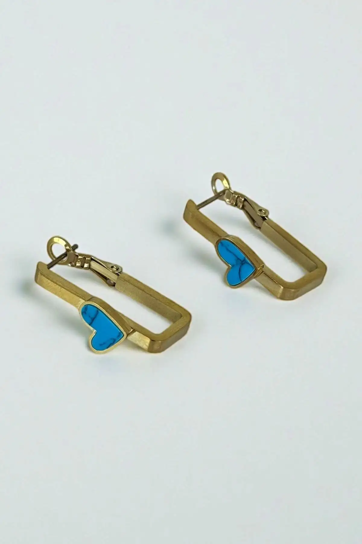 Altın Renk Kalp Figürlü Çelik Küpe (Çift)