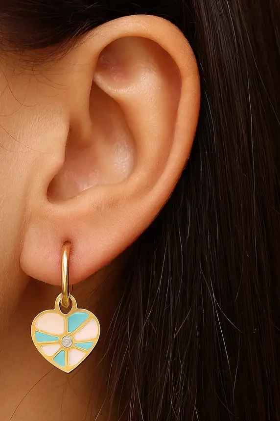 - Zarif tasarımıyla dikkat çeken bu çift küpe, altın rengi detaylarıyla göz alıcı bir görünüm sunar.