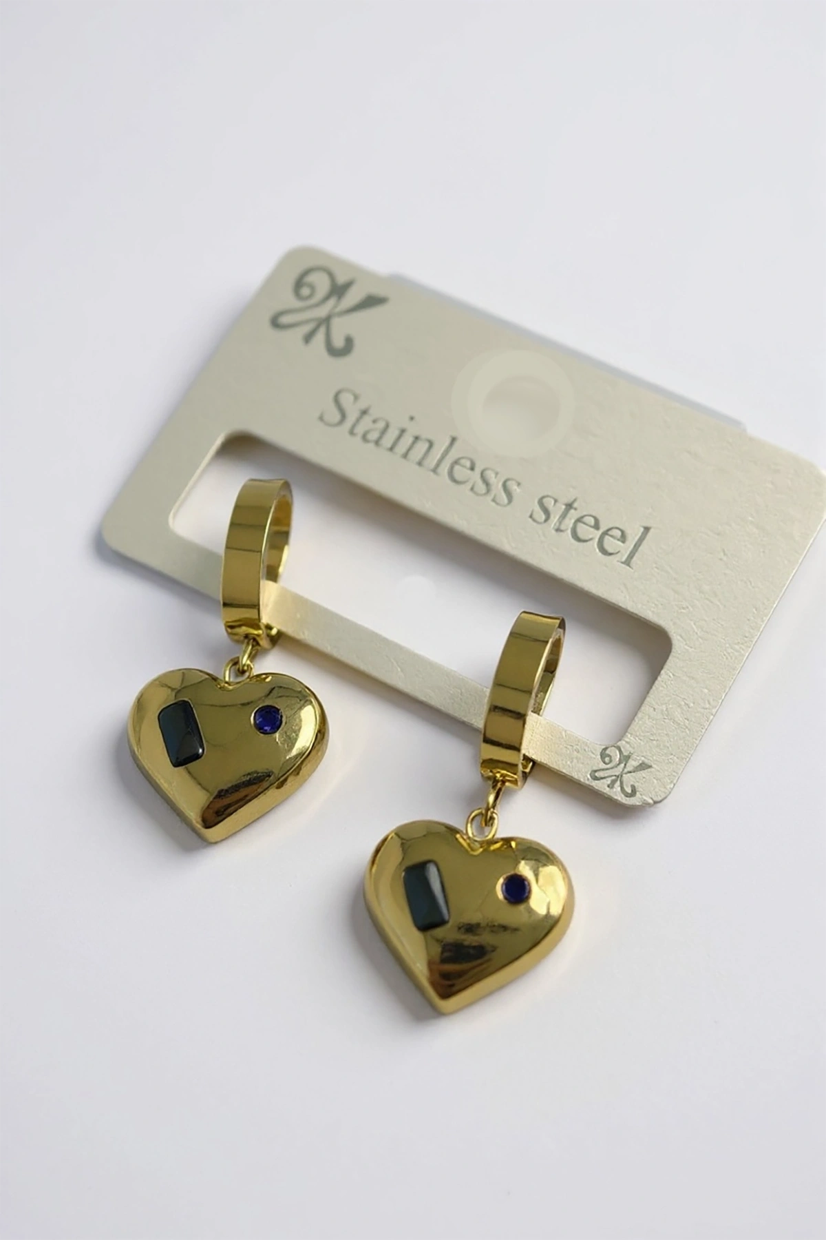Altın Renk Kalp Figürlü Çelik Küpe (Çift)