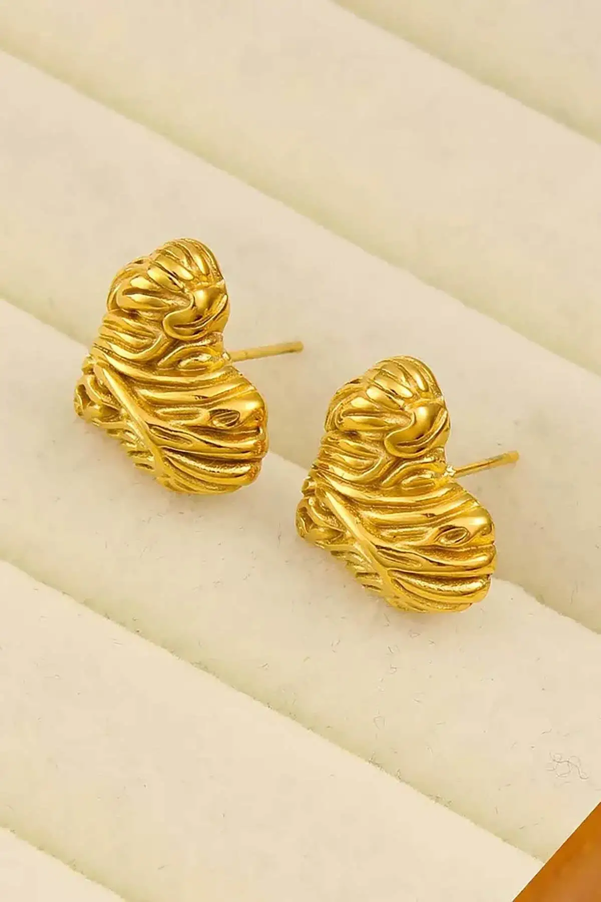 Altın Renk Kalp Figürlü Çelik Küpe (Çift)