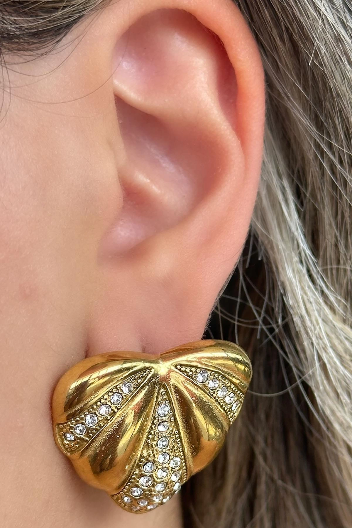 - Zarif tasarımıyla dikkat çeken bu çift küpe, detaylarıyla göz alıcı bir görünüm sunar.