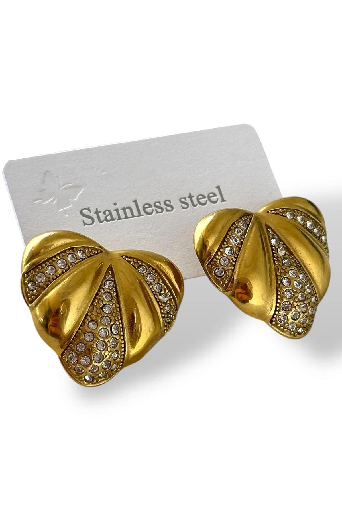 Altın Renk Kalp Figürlü Çelik Küpe (Çift)