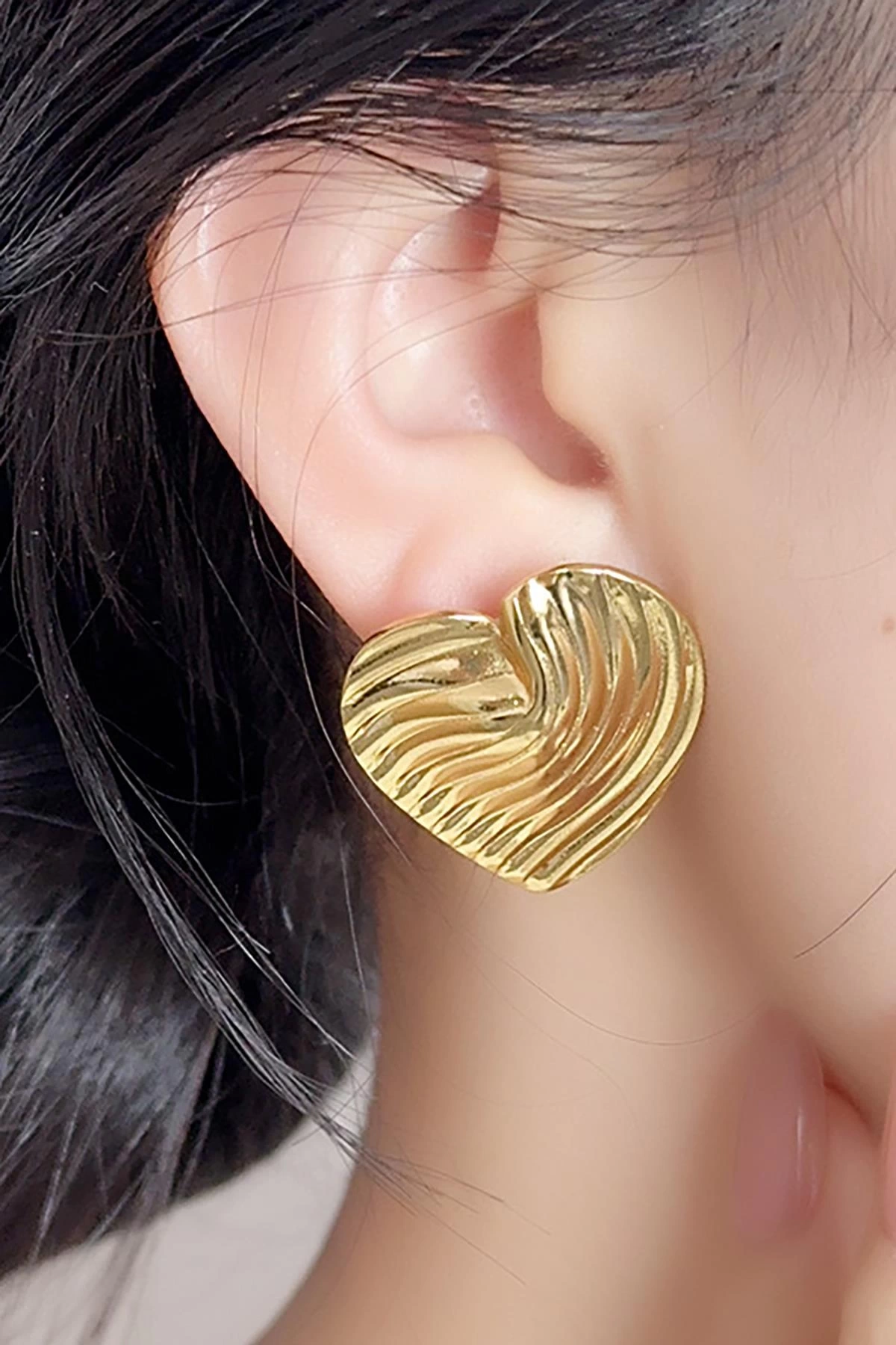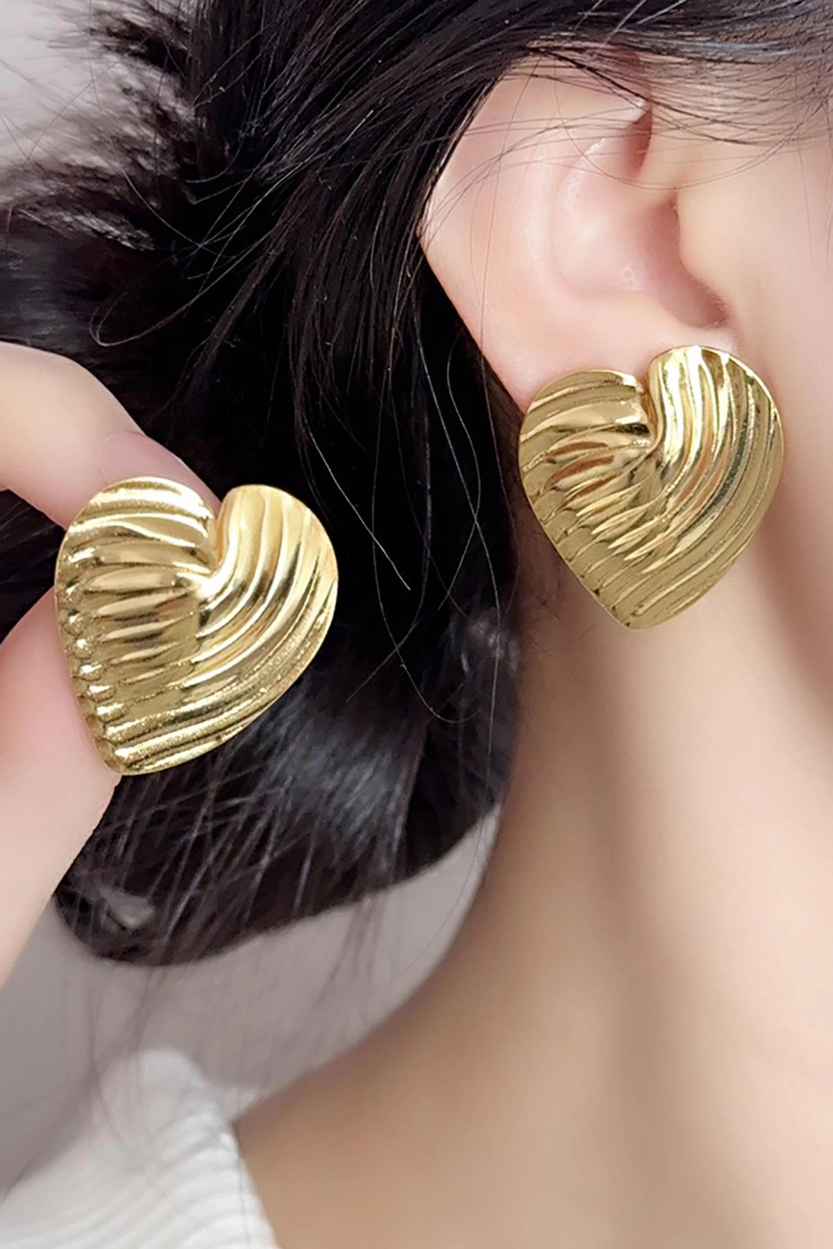 Altın Renk Kalp Figürlü Çelik Küpe (Çift)