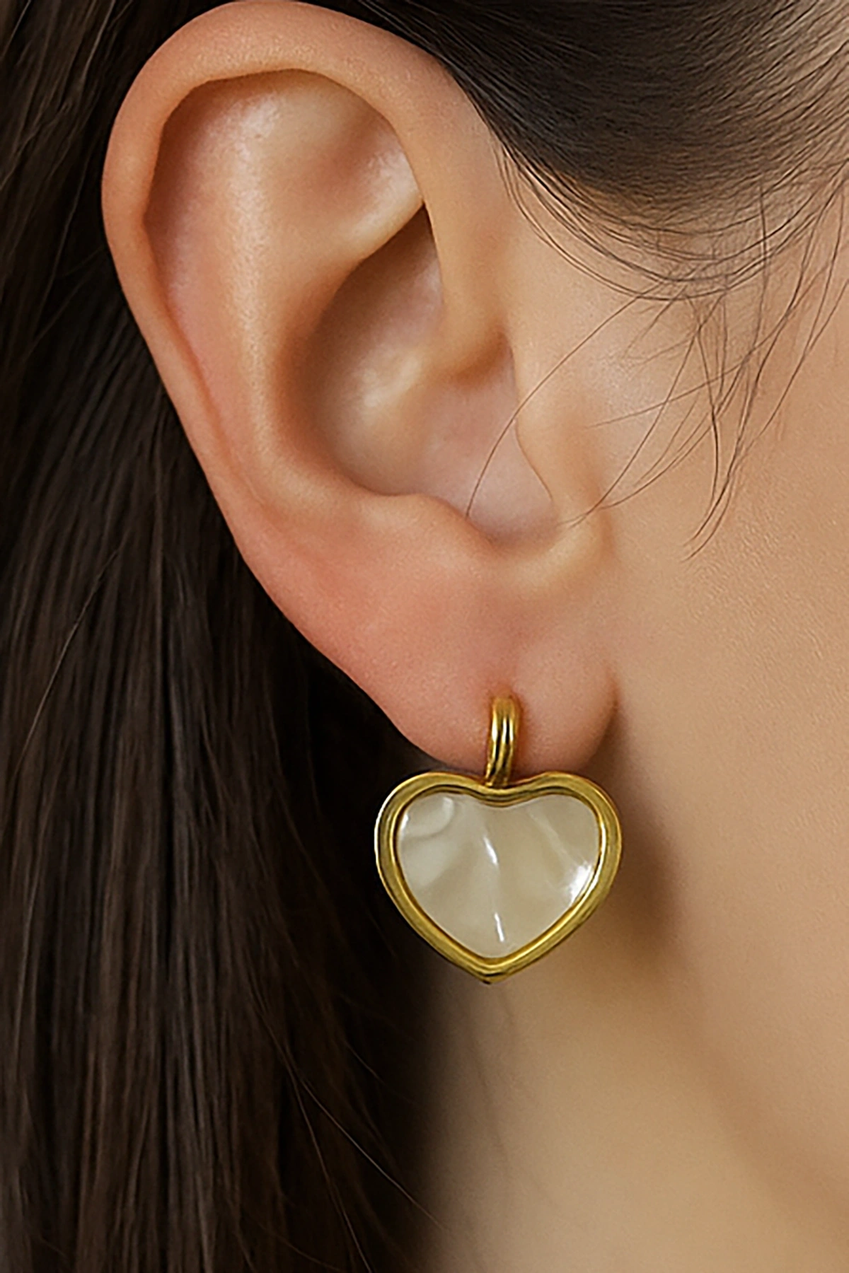 Altın Renk Kalp Figürlü Çelik Küpe (Çift)