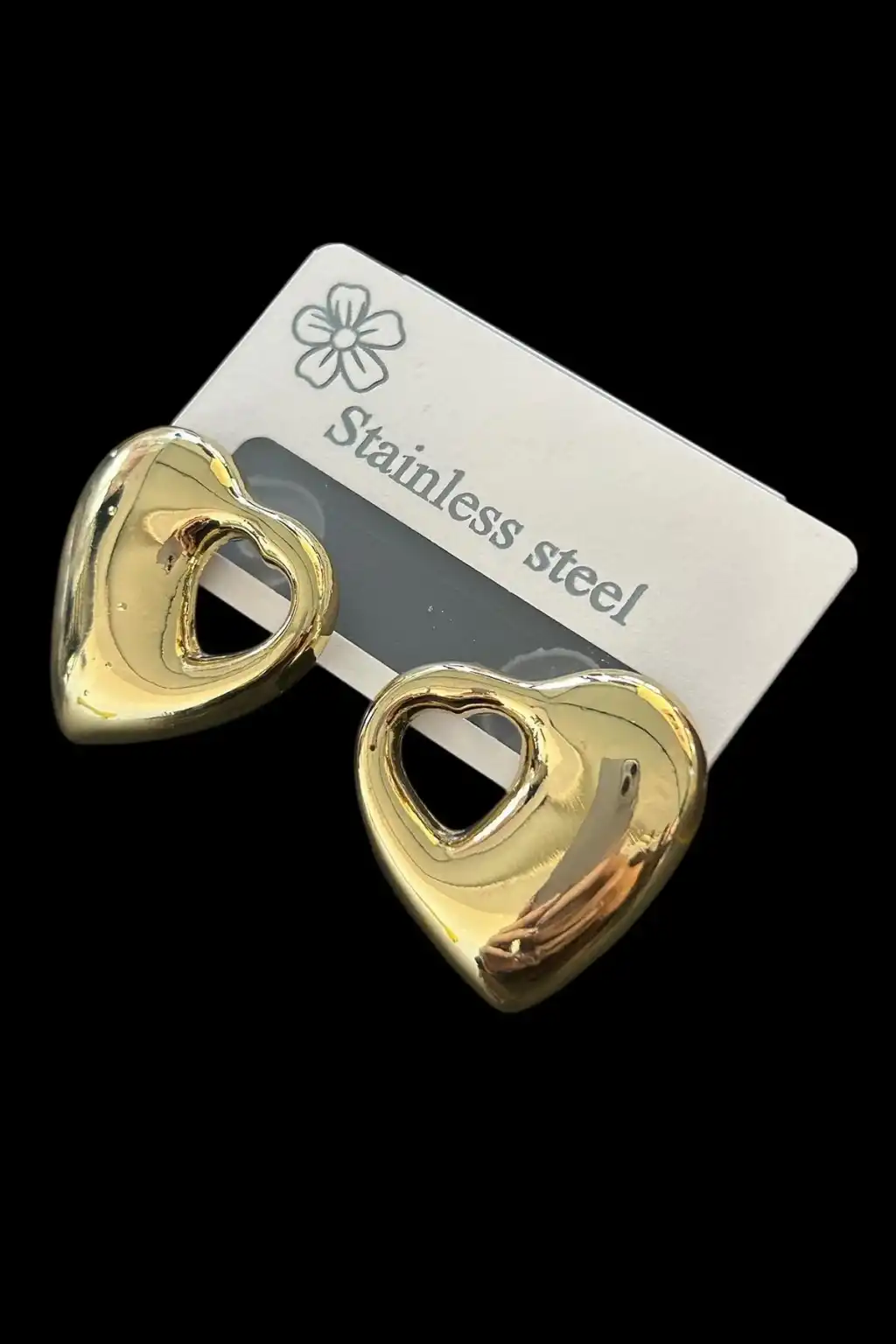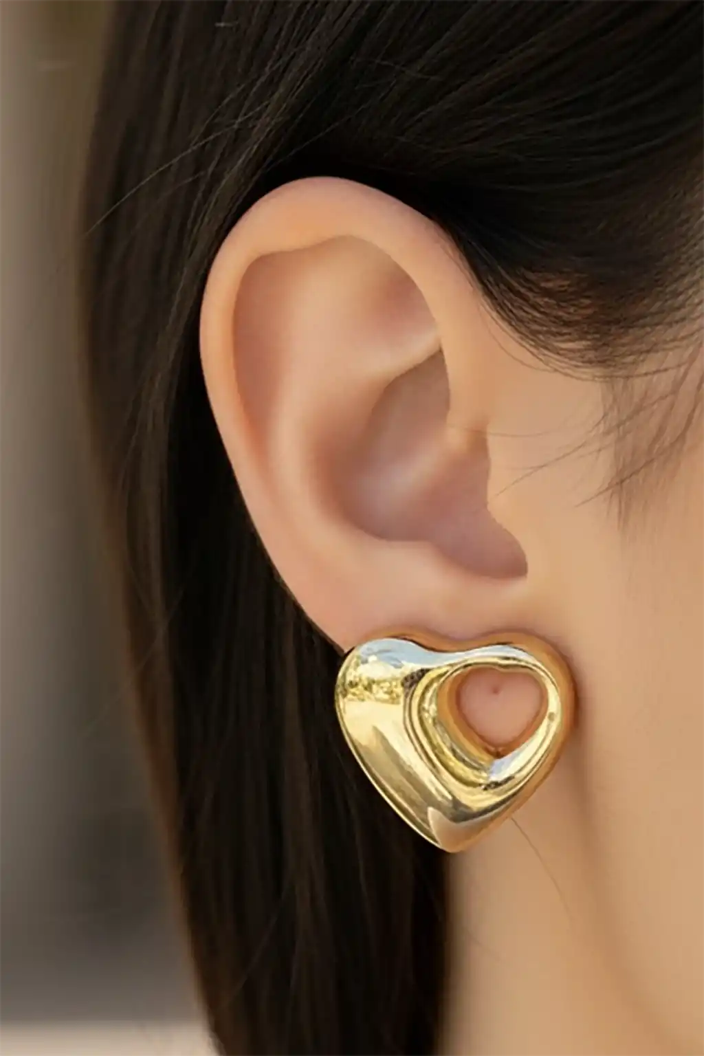 Altın Renk Kalp Figürlü Çelik Küpe (Çift)