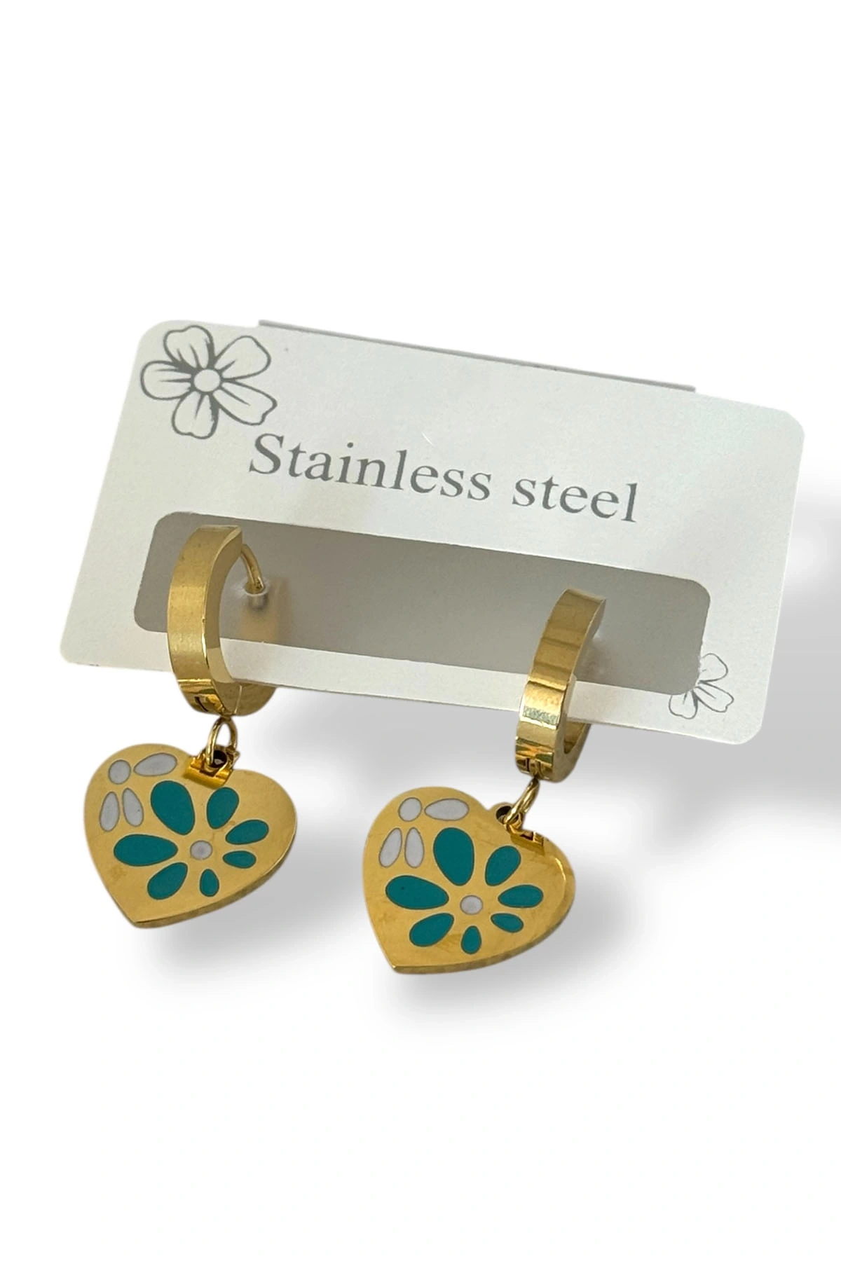 Altın Renk Kalp Figürlü Çelik Küpe (Çift)