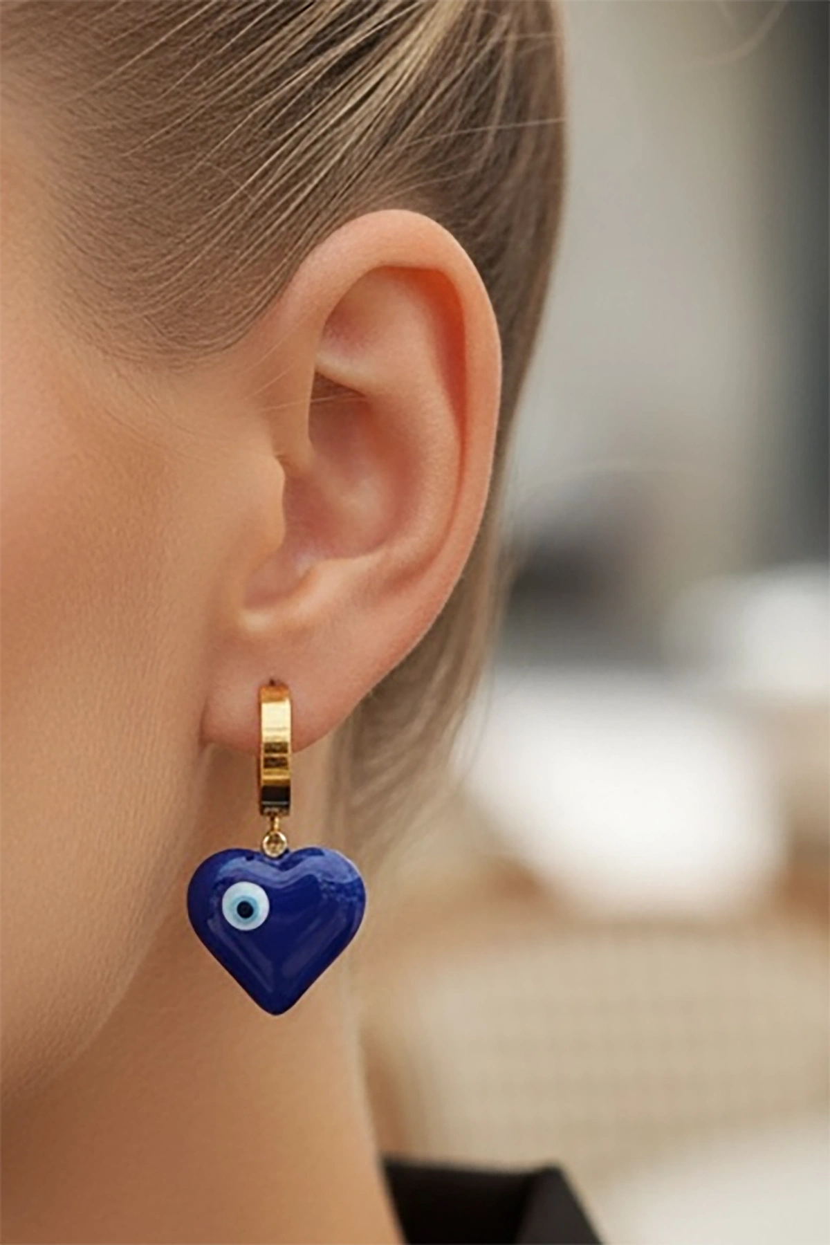 Altın Renk Kalp Figürlü Çelik Küpe (Çift)