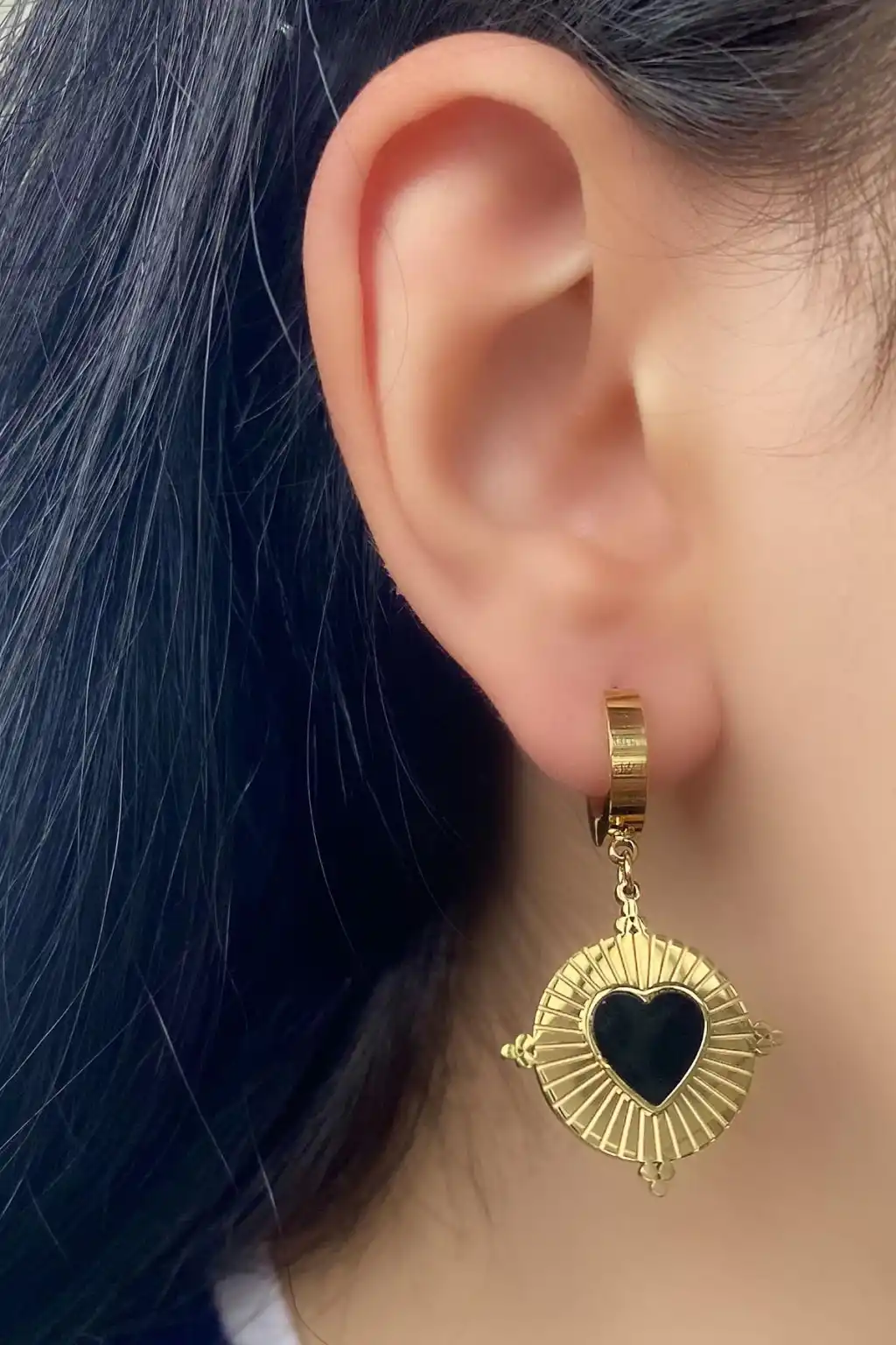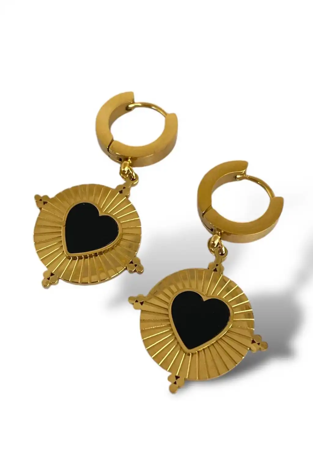 Altın Renk Kalp Detaylı Çelik Küpe (Çift)